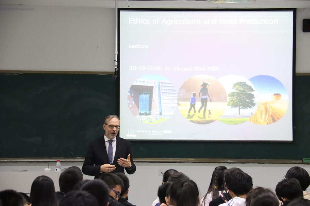 马克思主义学院海外名家第二个系列报告第四场于10月30日晚上在ios版雷竞技官网主楼201室举行,来自荷兰瓦格宁根大学Vincent Blok博士为全校师生带来了名为《Ethics of Agricultural Innovation and Food Production》的精彩报告。讲座由马克思主义学院副院长姜萍教授主持,来自全校各学院的同学共同聆听了本场讲座。