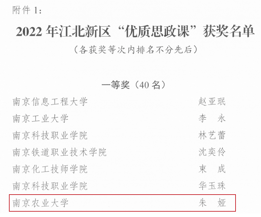 近日,我院朱娅教授的“贯彻新发展理念,推进江北新区高质量发展”课程案例获得2022年江北新区“优质思政课”一等奖。