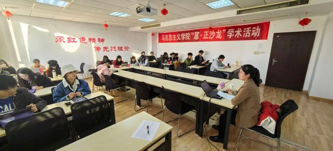 2023年11月20日下午,马克思主义学院在翰苑辅楼501教室举办“思·正沙龙”活动。本次活动以“当代历史虚无主义思潮的新演变及其批判”为主题,由学院的李珍珍老师主讲,研一、研二全体学生参与。