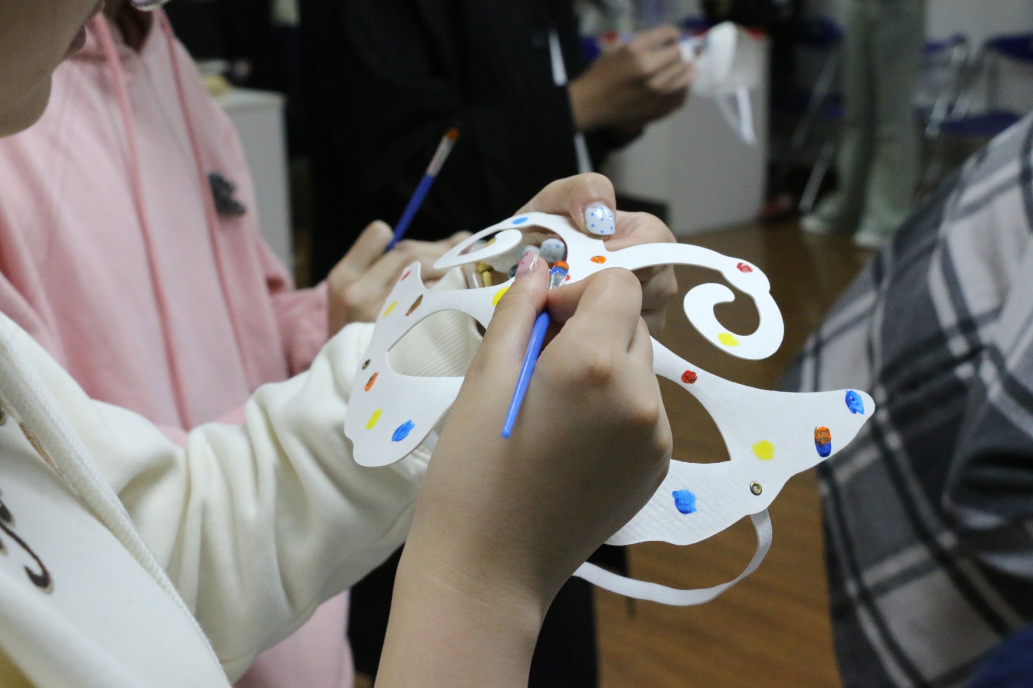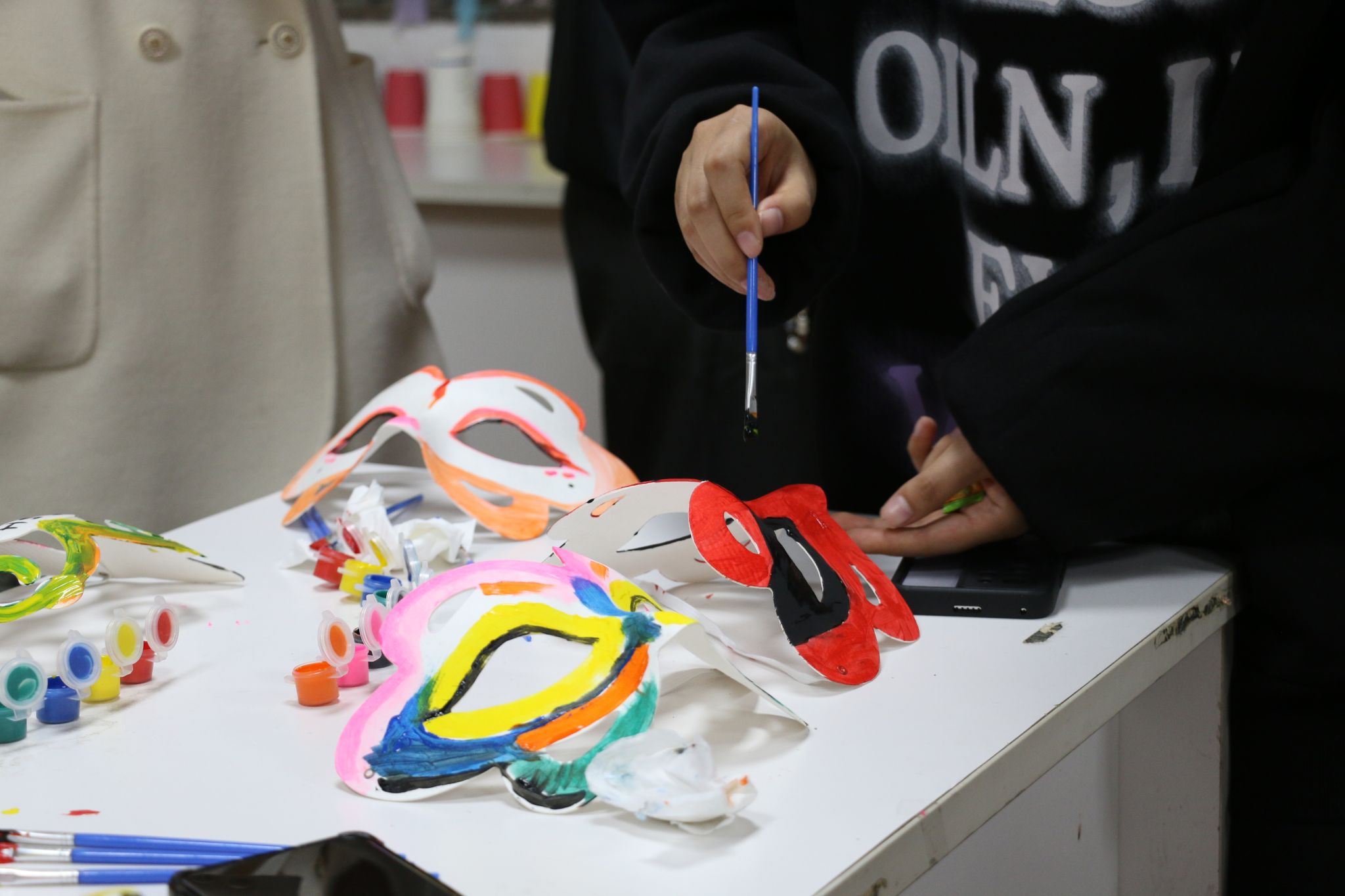 有趣的面具DIY环节,大家发挥自己的艺术思维与创造力,在手工创作中舒展内心、解压放松。现场氛围轻松惬意、欢乐不断。