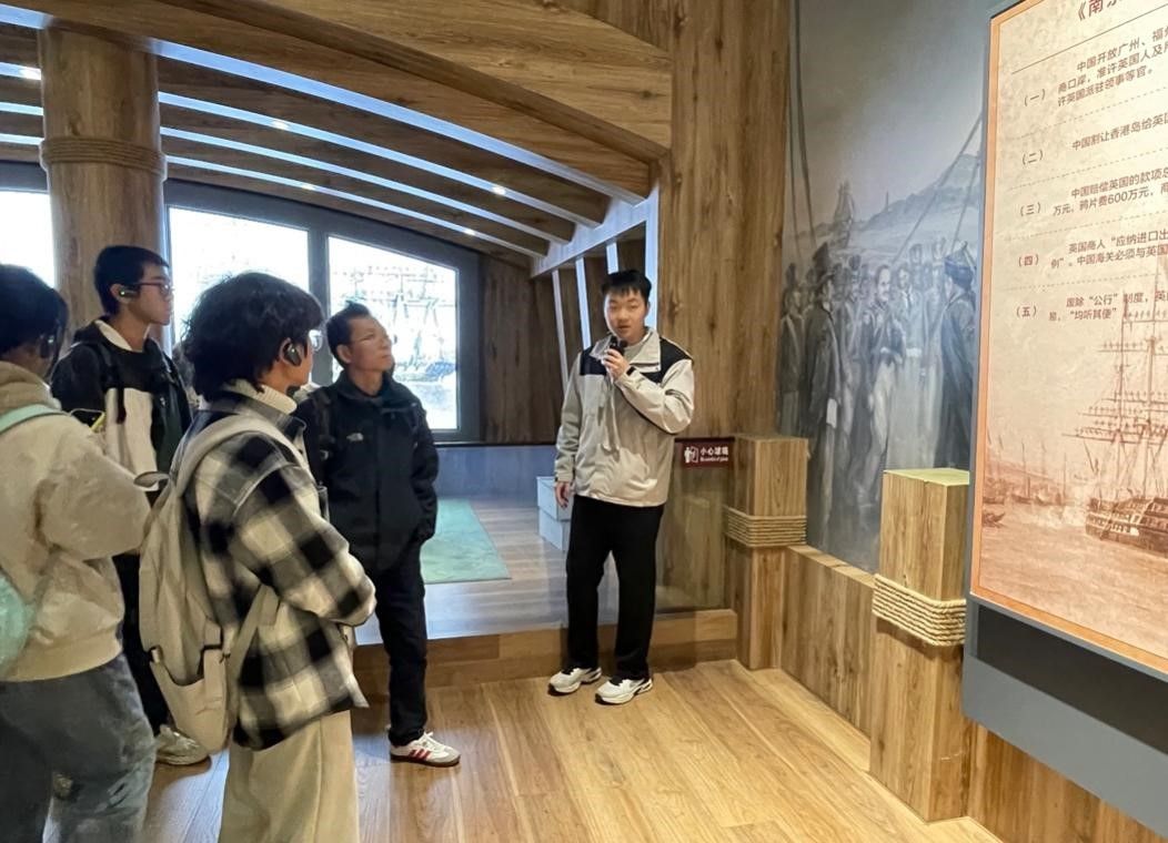 在史料陈列馆内,学生们参观了《从屈辱到自强——中英〈南京条约〉史实展》五个展厅。这些展厅分别以“千年变局 国门始破”、“百年耻辱 城下之盟”、“百年枷锁 民族劫难”、“百年抗争 救亡图强”和“百年梦圆 香港回归”为主题,通过文字、图片、实物和动画影像等多种形式,全面再现了《南京条约》的历史背景和影响。学生们认真聆听讲解,不时驻足凝视,仿佛穿越时空,亲身经历了那段屈辱与抗争的历史。