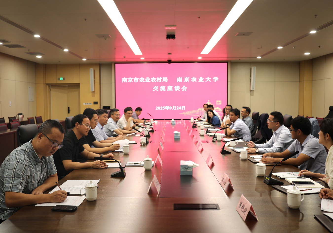 南京市农业农村局有关部门负责同志,我校校长办公室、科学研究院、社会合作处、实验室与基地处、农学院、植物保护学院、园艺学院、动物科技学院负责同志参加座谈。