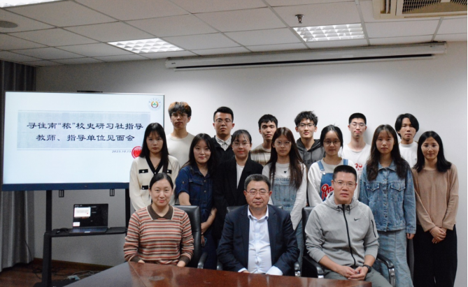 10月15日晚,寻往南“秾”校史研习社学生与社团指导老师、指导单位见面会在图书馆七楼会议室举行。校党委常委副校长董维春、图书馆(文化遗产部)党总支副书记、副馆长(副部长)王春伟、学生社团负责老师李冰、社团负责人及社团骨干、社团成员代表等参加了此次见面会。会议由王春伟主持。