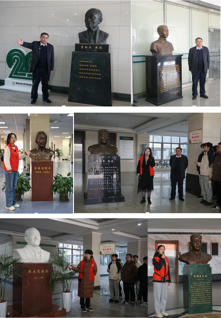 12月17日上午,《南农简史》通识核心课程师生开展实践教学,与图书馆(文化遗产部)校史研习社师生一起进行校史馆、农博馆、院士长廊、各楼宇内先贤雕塑和校园建筑等承载学校历史类场馆(所)的校园参观。