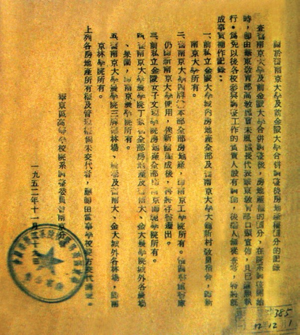 1952年,全国高校院系调整,以金陵大学农学院、南京大学农学院(原国立中央大学农学院)为主体,以及浙江大学农学院部分系科,合并成立南京农学院,定址丁家桥。