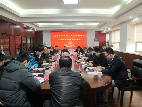 12月3日下午,我校与苏宁环球集团举行合作项目对接会议。苏宁环球集团总经理张康黎、苏宁现代农业股份有限公司副总经理夏圣勤,我校副校长丁艳锋、科学研究院副院长陈巍等出席会议。