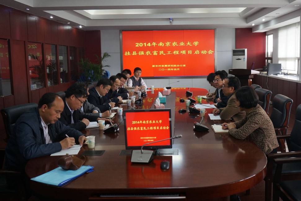 4月28日下午,我院召开2014年度挂县强农富民工程项目启动会。新农村发展研究院办公室主任陈巍、副主任李玉清、基地与推广科科长王明峰出席会议。会议由李玉清主持。