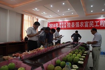 评审期间,我校园艺学院教授渠慎春作为张家港市挂县果树专家为前来参赛、观摩的农户作题为“果树新兴产业—甜柿产业发展前景探讨”的讲座。我校园艺学院章镇教授、王三红教授和江苏省园艺技术推广站陈宗元研究员、陆爱华研究员作为评审也参加了此次活动。