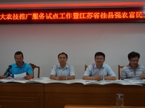 7月11日,我校重大农技推广服务试点工作张家港技术培训会暨挂县强农富民工程项目技术培训会顺利举办。新农村发展研究院办公室副主任李玉清,园艺学院副院长吴巨友教授,挂县强农富民工程项目专家渠慎春教授,张家港市农委科教站站长李蓁,“南农易农”开发合作企业南京云思凯普电子科技有限公司总经理孙明星等参加了活动。活动由张家港市果树站副站长俞忠主持。