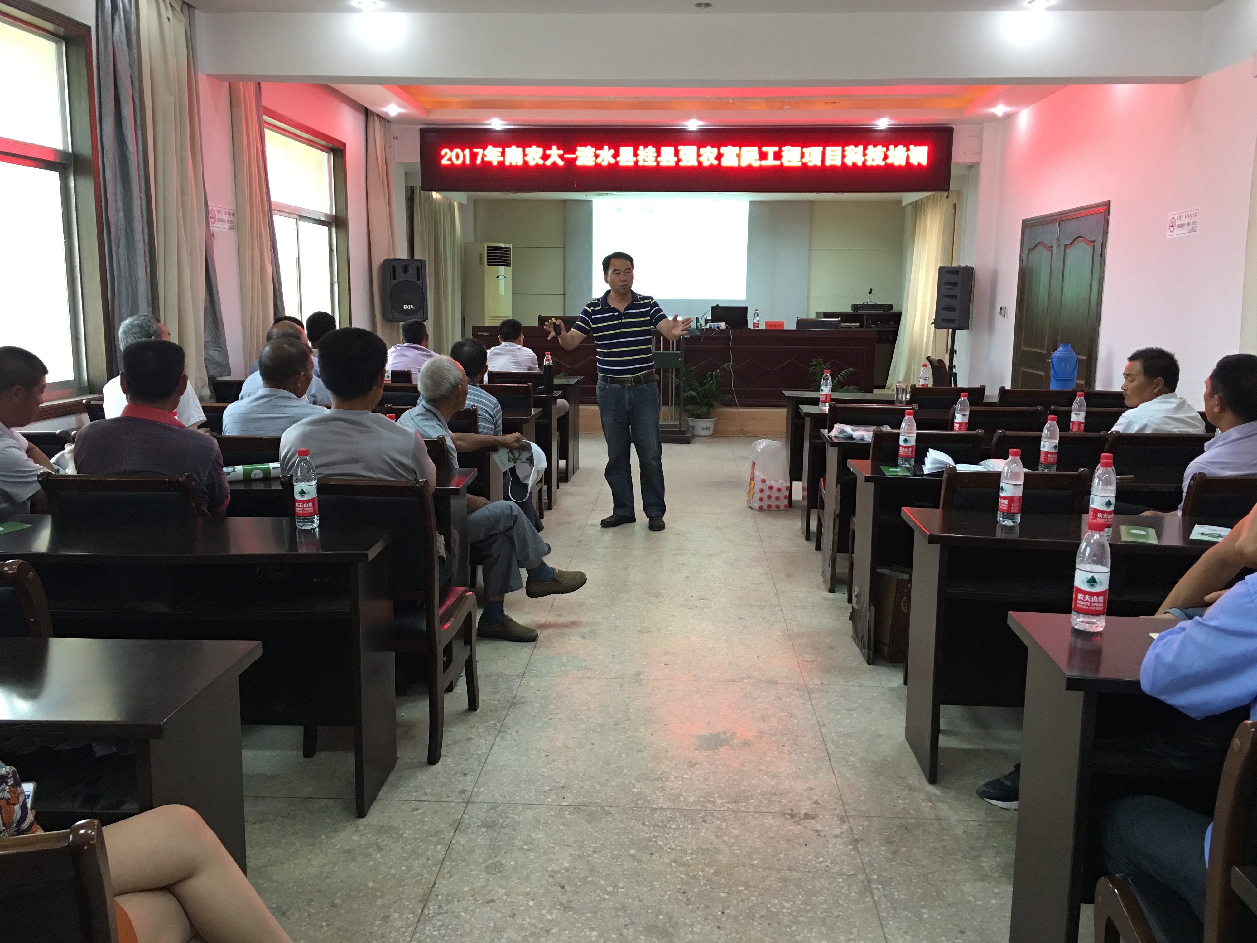 6月28日,我校新农办主任陈巍、动科学院教授黄瑞华、园艺学院副教授王建军、新农村发展研究院办公室科长王克其等赴涟水县开展挂县强农富民工程推进会暨科技培训。涟水县农委副主任翟连成、科教科科长胡艳艳等参加活动。推进会由翟连成主持。