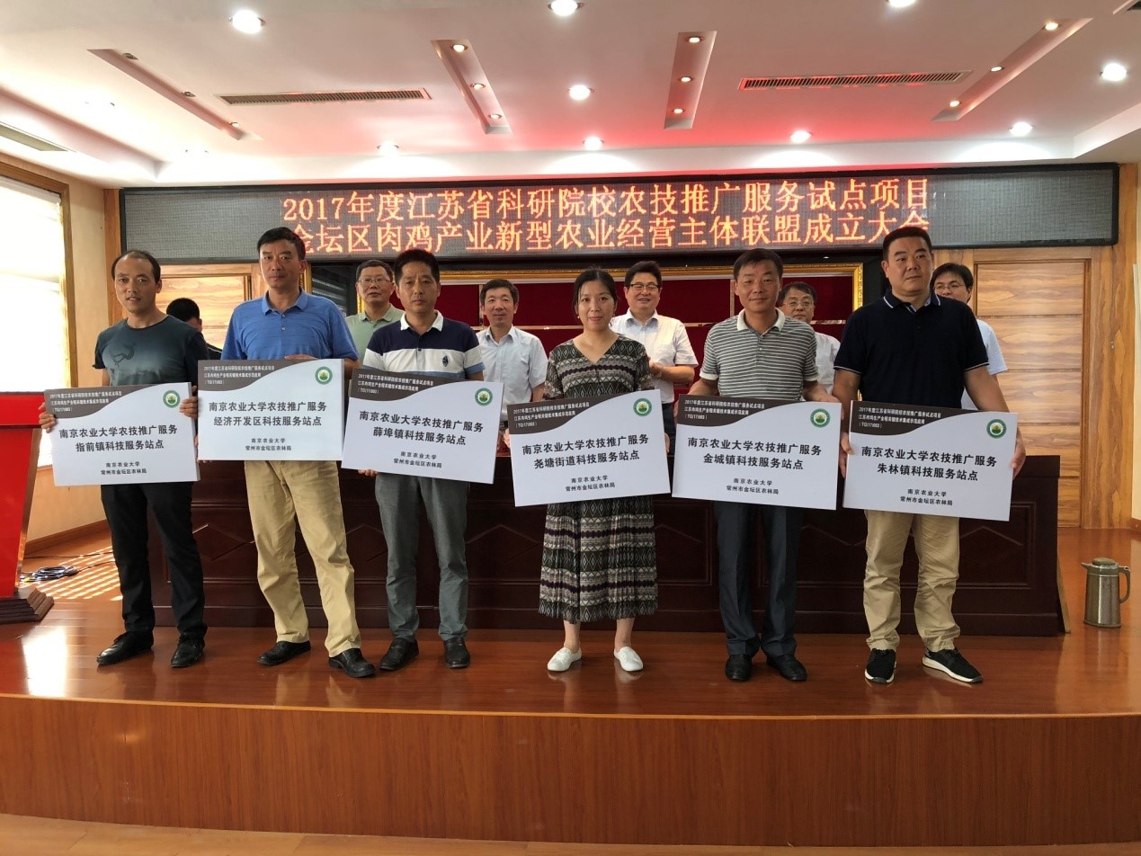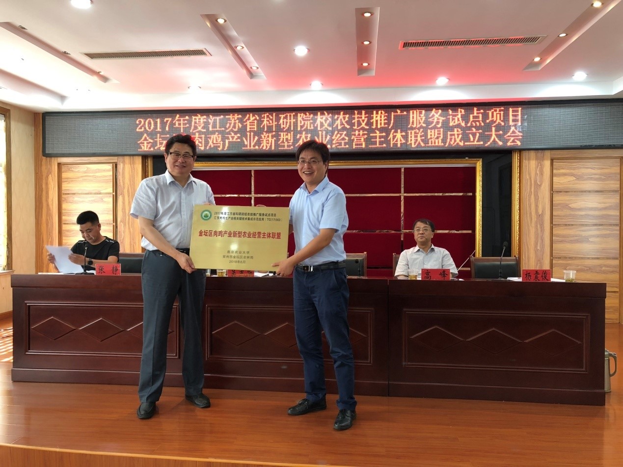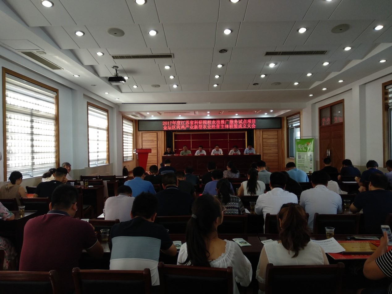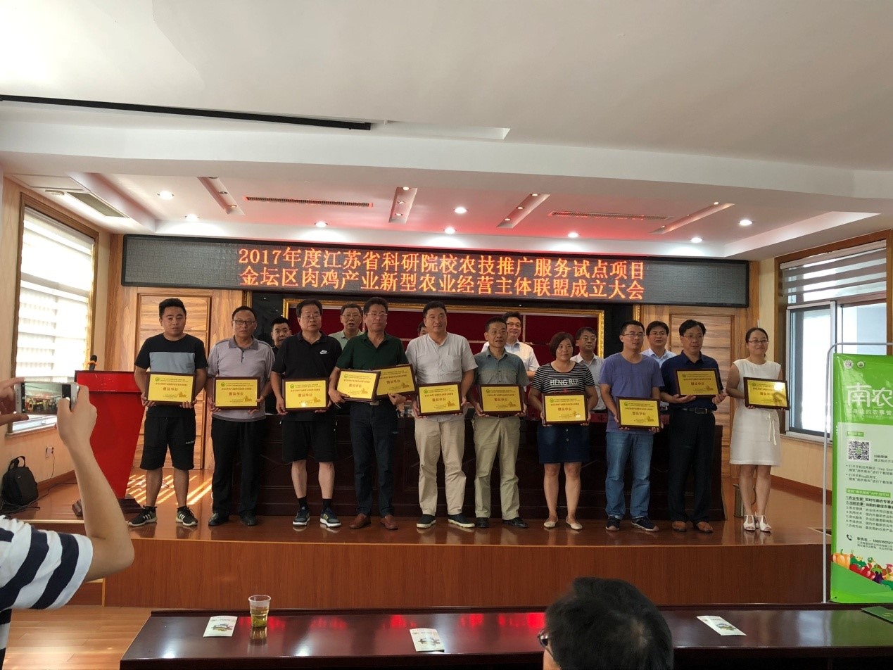 7月12日,我校与金坛区共建肉鸡产业新型农业经营主体联盟成立大会顺利召开。联盟由我校承担的江苏省科研院校农技推广服务试点项目——“江苏肉鸡生产全程关键技术集成示范应用”项目组,与金坛区农林局、金坛区18家新型农业经营主体共同发起。