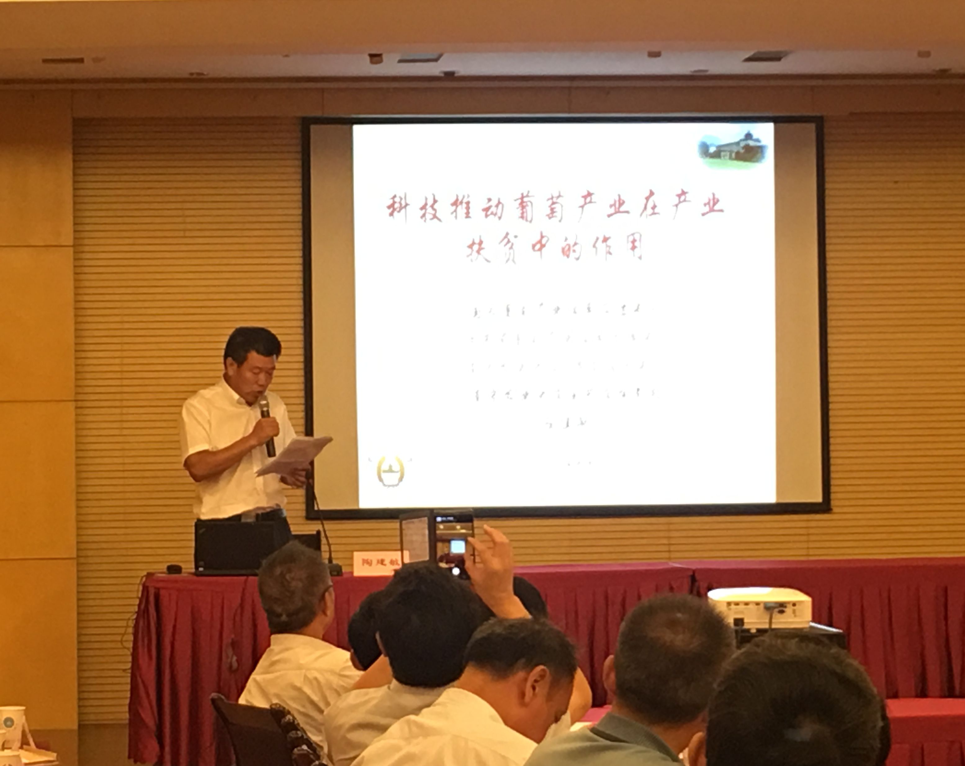 我校陶建敏教授、省农科院俞明亮研究员作为全省专家代表介绍科技帮扶体会。陶建敏作题为“科技推动葡萄产业在产业扶贫中的作用”的报告。他以灌南为例,讲述通过推广新品种、新技术,让农户种出好葡萄;通过引进销售商、帮助销售,让农户赚了钱、致了富;通过开展特色活动,促进了技术大面积推广;通过我校“双线共推”科技服务模式,建立了葡萄产业新型农业经营主体联盟,促进了科技帮扶效能。