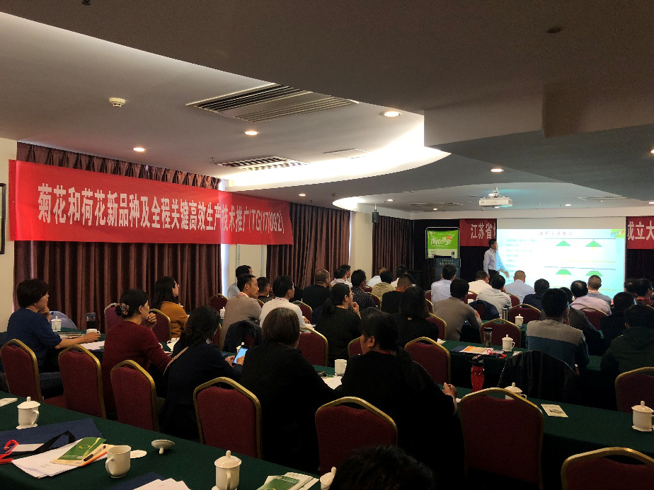 10月10日下午,江苏省切花菊产业新型农业经营主体联盟成立大会在我校顺利召开。新农办主任陈巍、江苏省农委科教处副处长马爱京、新沂市农业委员会副主任刘凤君、新沂市农委花木办公室主任徐士才、项目团队首席专家房伟民教授,以及来自省内50余家切花菊新型农业经营主体负责人参加了会议。会议由陈巍主持。
