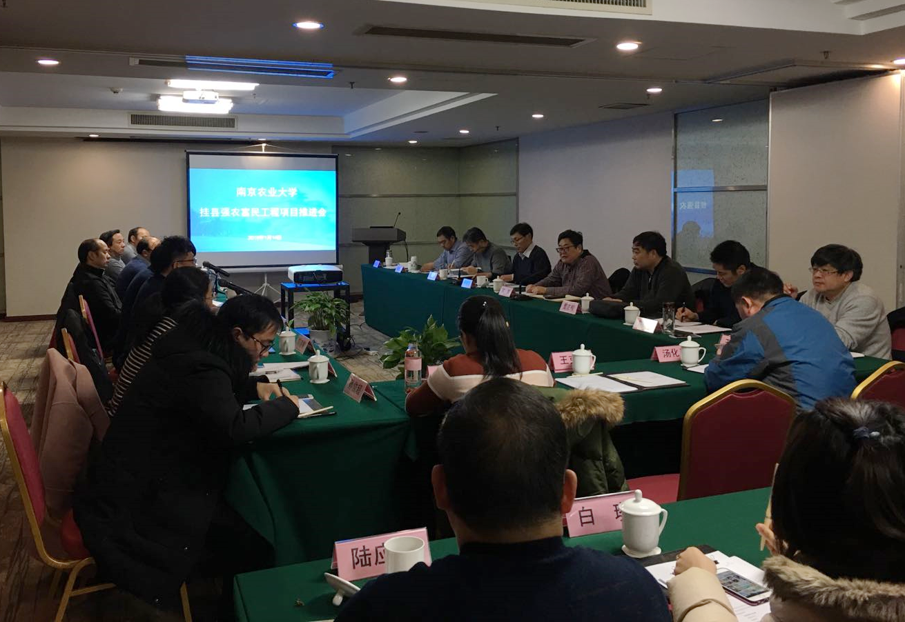 2019年1月14日,我校2018年挂县强农富民工程项目推进会在学术交流中心召开。江苏省农业农村厅科教处副处长黄银忠,我校社会合作处处长陈巍,张家港市农委党委书记汤卫华,灌南县农委副主任王新华,涟水县农委副主任翟连成,新沂市农委副主任刘凤君,泗洪县农委副主任董正权出席会议,挂县强农富民工程专家园艺学院陶建敏教授、渠慎春教授、管志勇教授、王三红教授、钱春桃副教授、孙锦副教授等;农学院李刚华教授;动物科技学院李平华副教授、陆应林博士、方星星博士等参加会议。会议由社会合作处科长王克其主持。