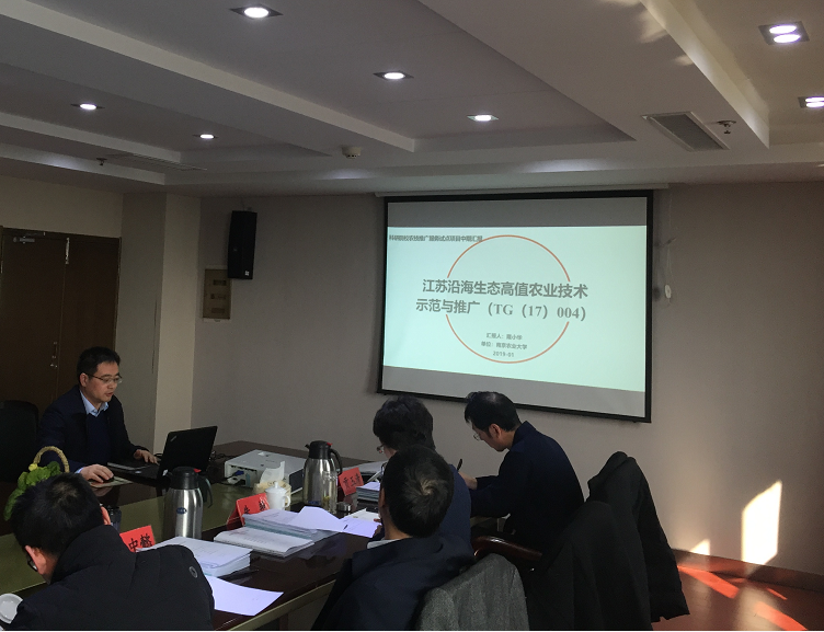 2019年1月22日,2017年度江苏省科研院校农技推广服务试点项目中期检查汇报会议在江苏省农科院召开。江苏省农业科学院院长易中懿、ios版雷竞技官网农学院院长朱艳、江苏省畜牧总站副站长,贡玉清等领导专家出席会议。我校蔬菜项目首席侯喜林教授,花卉项目首席房伟民教授,肉鸡项目首席高峰教授,盐土农业项目首席隆小华副教授分别参与汇报。