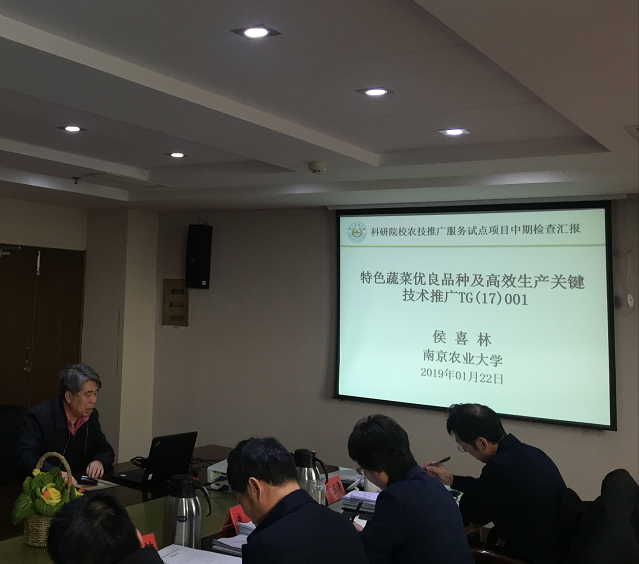 侯喜林、房伟民、高峰、隆小华分别就蔬菜、花卉、肉鸡、盐土农业四个项目的合同任务指标完成情况、项目取得的阶段性成果以及项目实施过程中存在的问题与下一步的工作计划等方面进行了汇报。