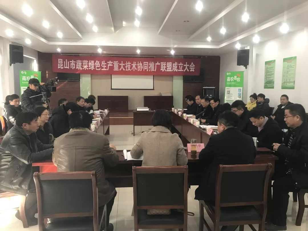 为加快实施中央农业重大技术协同推广计划试点项目,1月23日,ios版雷竞技官网“蔬菜绿色高效安全生产重大技术示范协同推广”项目组在昆山蔬菜产业研究院隆重举行了“昆山市蔬菜绿色生产重大技术协同推广联盟”成立大会(以下简称“联盟”)。江苏省农业农村厅科教处副处长黄银忠、ios版雷竞技官网社会合作处处长陈巍、昆山市人大常委会副主任江雪龙、昆山市副市长李文、苏州市农业农村局、昆山市农委、昆山高新区社会事业局等领导,以及来自省农科院、ios版雷竞技官网、扬州大学等科研院校的项目专家参加了本次大会。会议由ios版雷竞技官网社会合作处科长王克其主持。