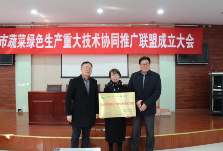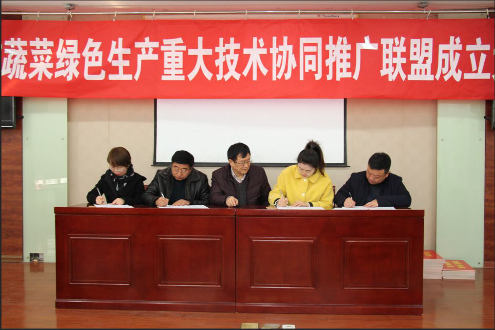 江雪龙和陈巍为当选理事长玉叶蔬食产业基地总经理陈颖授联盟铜牌。项目首席专家郭世荣教授、技术专家吴震教授分别与示范基地负责人签订协议,并由专家向联盟代表发放了物化补贴。