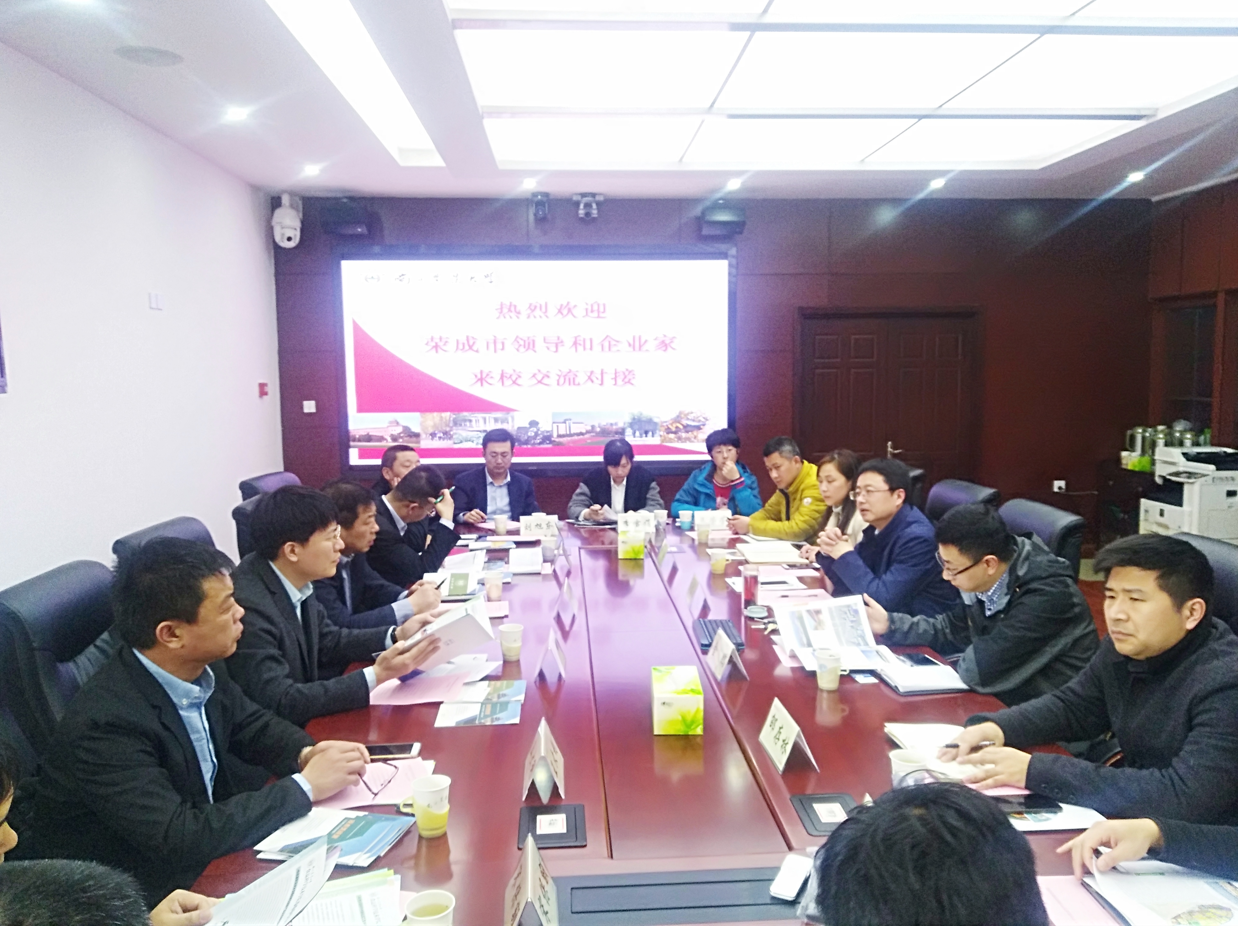 3月13日下午,山东荣成市副市长刘峰,市科技局、海洋发展局、石岛管理区经济发展局主要领导和部分企业负责人一行12人来我校对接产学研合作相关事宜。社会合作处副处长马海田,食品科技学院副院长金鹏以及社会合作处综合科、校企平台、技术转移等主管参加了座谈交流。