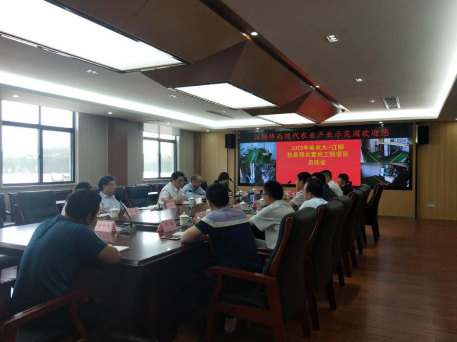 2019年7月5日下午,我校社会合作处处长陈巍、农学院李刚华教授、园艺学院渠慎春教授等一行赴江阴市开展2019年挂县强农富民工程项目调研对接。江阴市农业农村局副局长张金龙、曹亚成,科教科科长许栋,农技推广中心副主任王坚纲、周鹤等参加了会议。会议由张金龙主持。