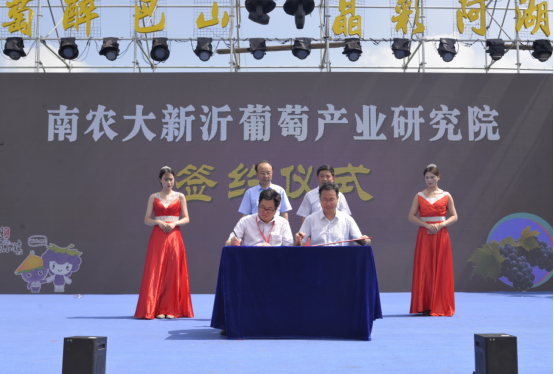 会上,陈巍、高跃分别代表校地双方签署协议。丁艳锋代表我校与陈堂清为南农大—新沂葡萄产业研究院揭牌。根据协议,我校与新沂市共同以研究院为平台积极开展校地合作、推进新沂产业兴旺。