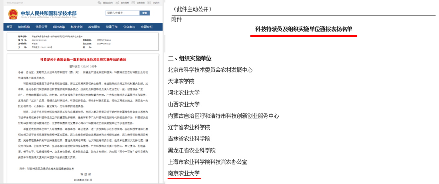 近日,科技部发布了《关于通报表扬一批科技特派员及组织实施单位的通知》(国科发农[2019]353号)(以下简称“通知”),对包含我校在内的一批科技特派员组织实施单位及个人进行了通报表扬。