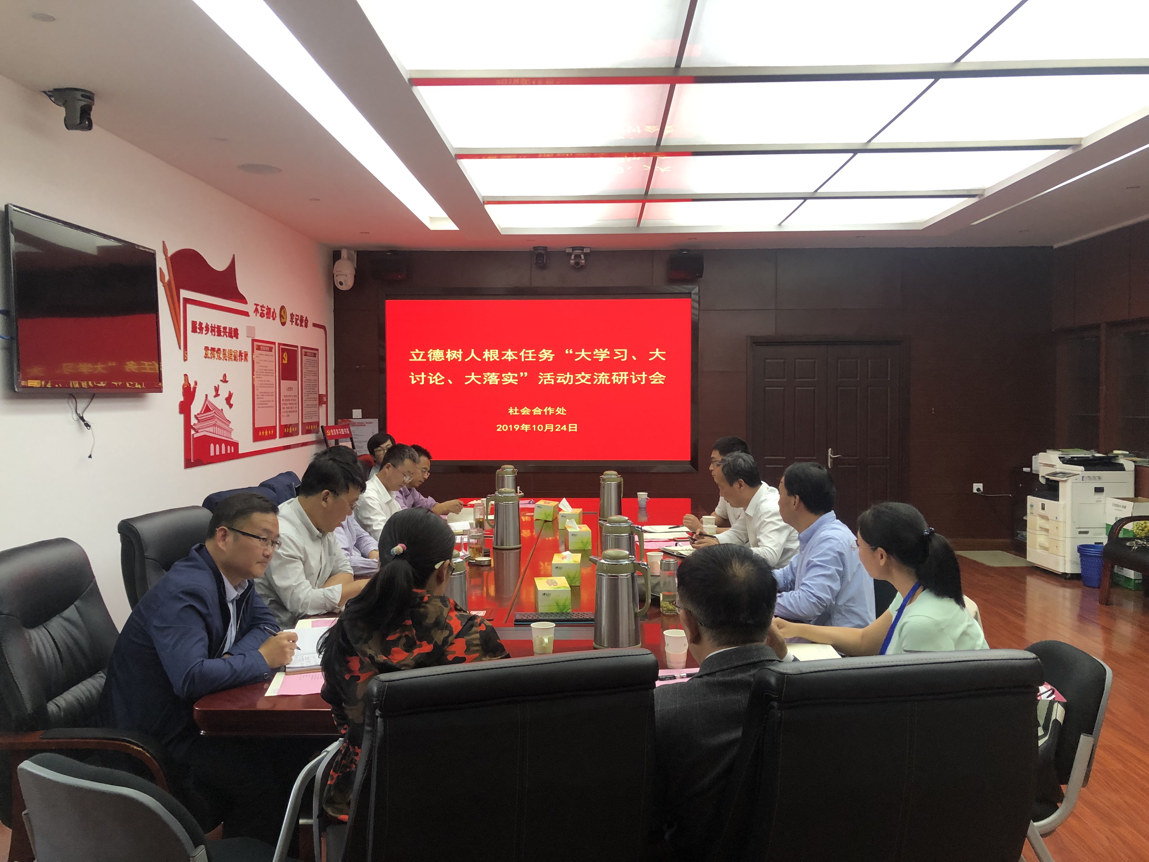 10月25日,我处组织召开“不忘初心、牢记使命”主题教育调研座谈交流会暨立德树人根本任务“大学习、大讨论、大落实”研讨交流会。社会合作处支部书记、处长陈巍、支部副书记、副处长马海田及支部部分党员参加会议,我校常年服务“三农”一线的专家学者和学校新农村服务基地部分负责人等14位来自不同学部的专家参加座谈。