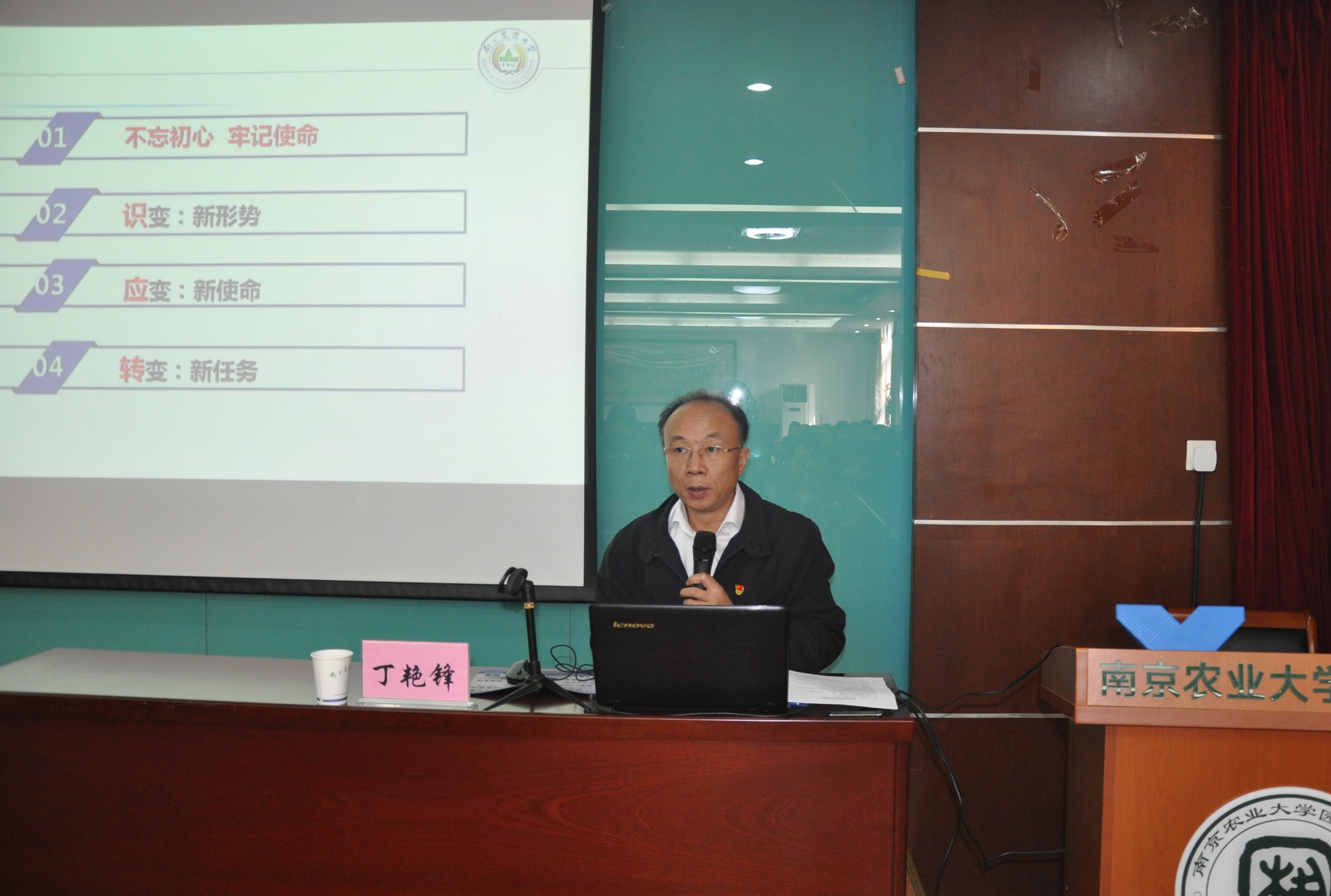 10月29日上午,校党委常委、副校长丁艳锋以《新形势 新使命新任务——新时代农业科技创新与乡村振兴》为题做“不忘初心、牢记使命”主题教育专题党课。科学研究院、人文社科处、社会合作处(新农办)、实验室与设备管理处和资产经营公司全体中层干部及全体党员以及园艺学院、生科学院班子成员等近90人参加学习。