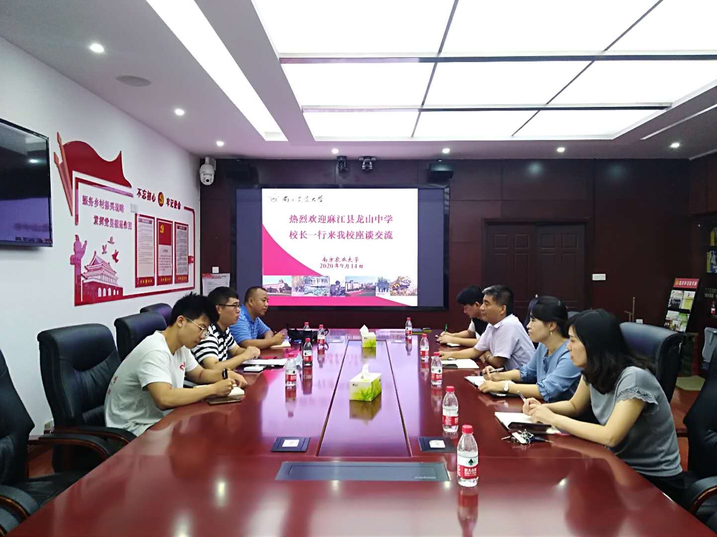 9月14-15日,麻江县龙山中学校长方怀刚,校足办主任潘奇君,校长助理、南农大研支团团长林玉朗一行来我校对接交流。校团委书记谭智贇、副书记朱媛媛,体育部主任、党委书记张禾、副书记许再银,校友总会办公室副主任狄传华及相关部门工作人员参加座谈,社会合作处扶贫开发科相关人员全程陪同。
