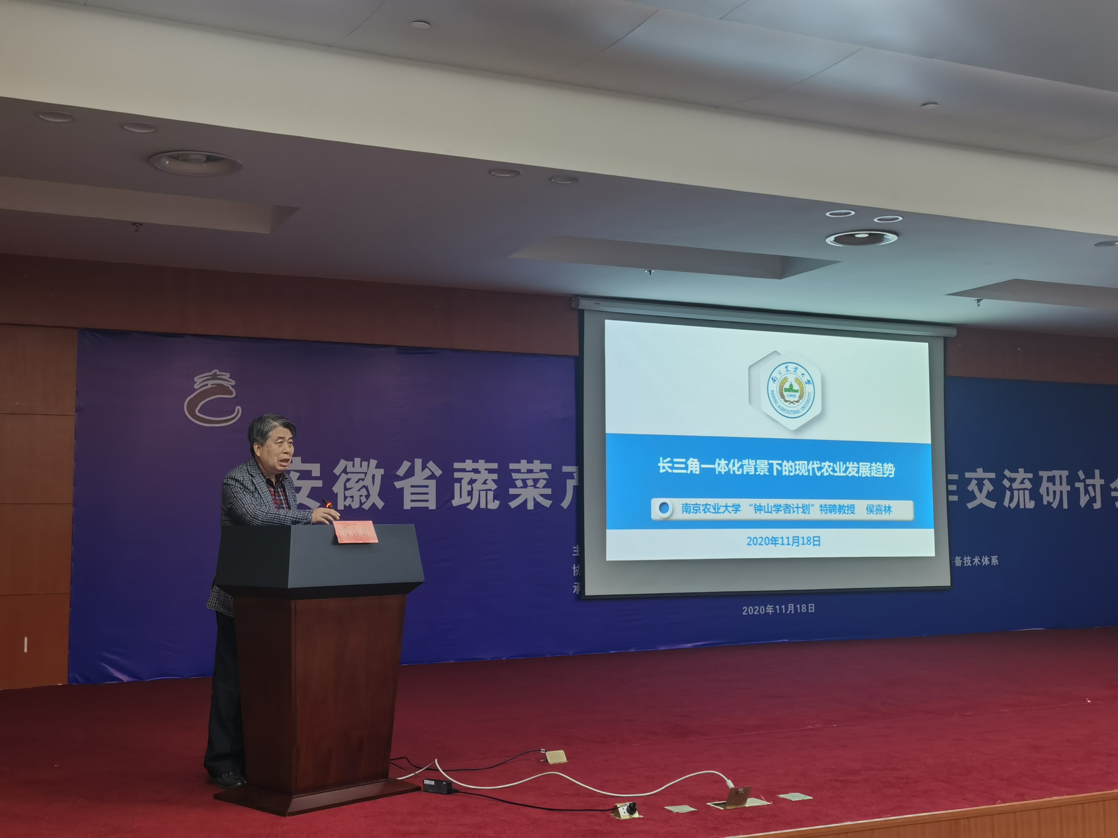 18号下午,侯喜林教授出席了安徽省蔬菜产业发展暨院企合作交流研讨会,本次研讨会由安徽省农业科学院、ios版雷竞技官网、安徽农业大学主办,侯喜林在研讨会上做了长三角一体化背景下的现代农业发展趋势主题报告,他从新时代下中国农业科技工作的三大使命开始,分析了现代农业的现状及存在的问题,指出今后现代农业的发展将以“优质高效绿色”为主要趋势,所作报告,获得与会人员一致好评。