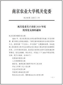 2021年1月6日,社会合作处党支部被校机关党委授予“2020年度优秀党支部”称号。2020年度,社会合作处党支部全面贯彻落实党建工作各项部署,着力强化支部政治建设,不断完善和创新组织生活的内容和方式,持续巩固“不忘初心、牢记使命”主题教育成果,工作开展卓有成效。