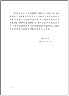 回望2020年,我们在疫情中开篇,防疫、扶贫、中心业务工作......我们全体党员在团结中奋进,在风雨中砥砺前行,在战疫情、促发展的大局中充分发挥出了党支部战斗堡垒和党员先锋模范作用。展望2021年,是中国共产党成立100周年,是我国实施“十四五”规划的开局之年,是开启全面建设社会主义现代化国家新征程的接力之年,也是我校农业特色世界一流大学建设开拓之年。2021年,我们坚信,社会合作处党支部在机关党委指导下,在陈巍书记带领下,在全体党员干部共同拼搏下,我们的事业一定会蒸蒸日上、再创佳绩!