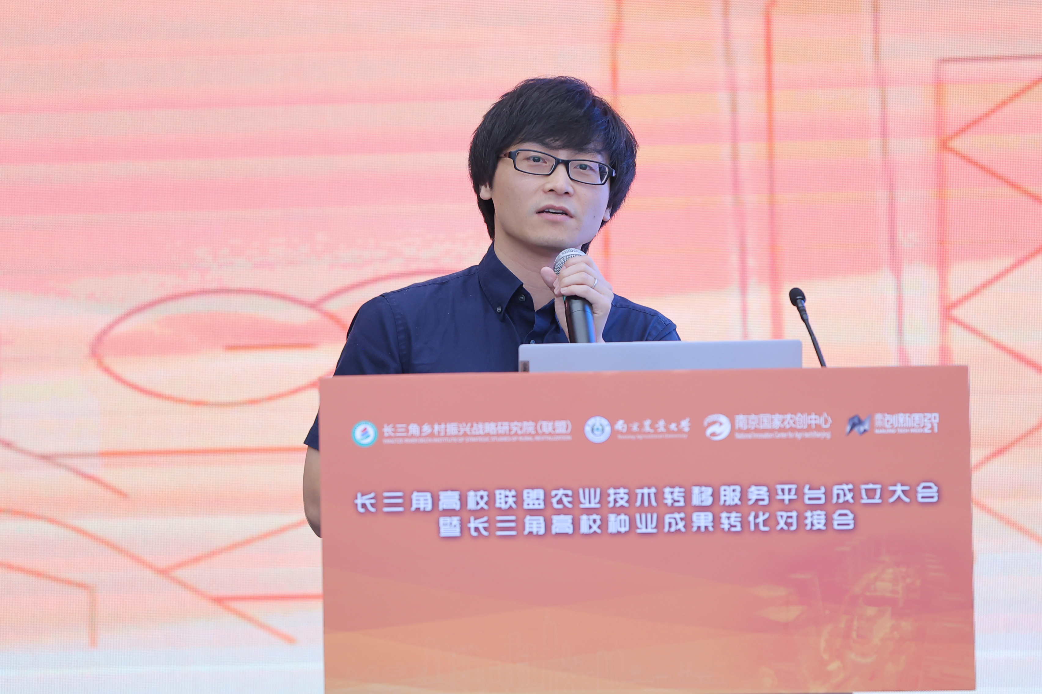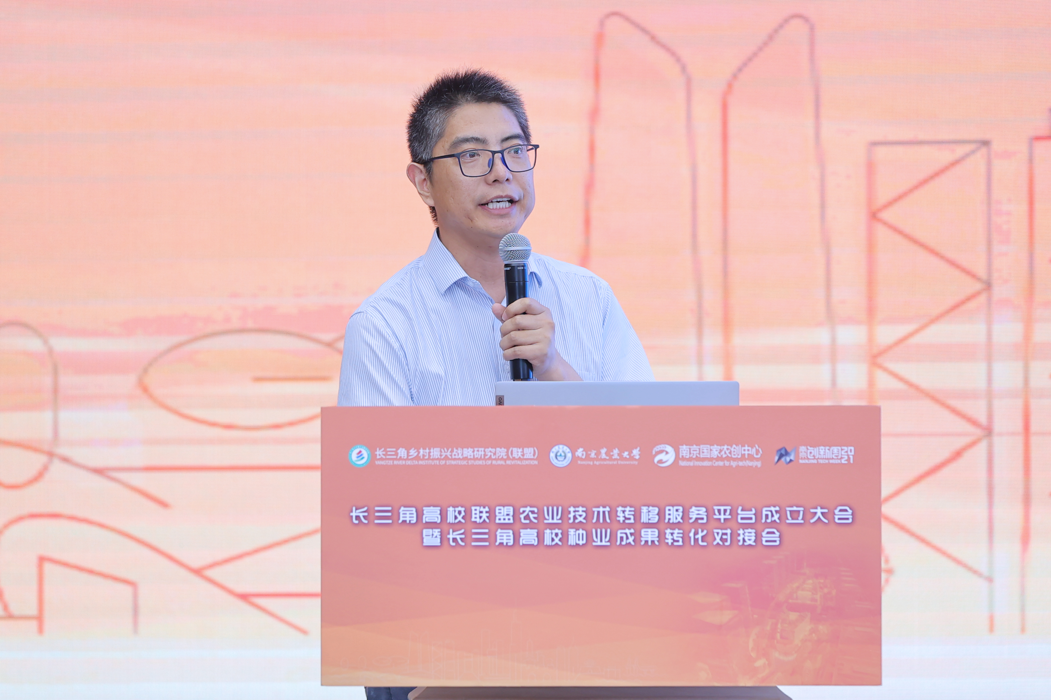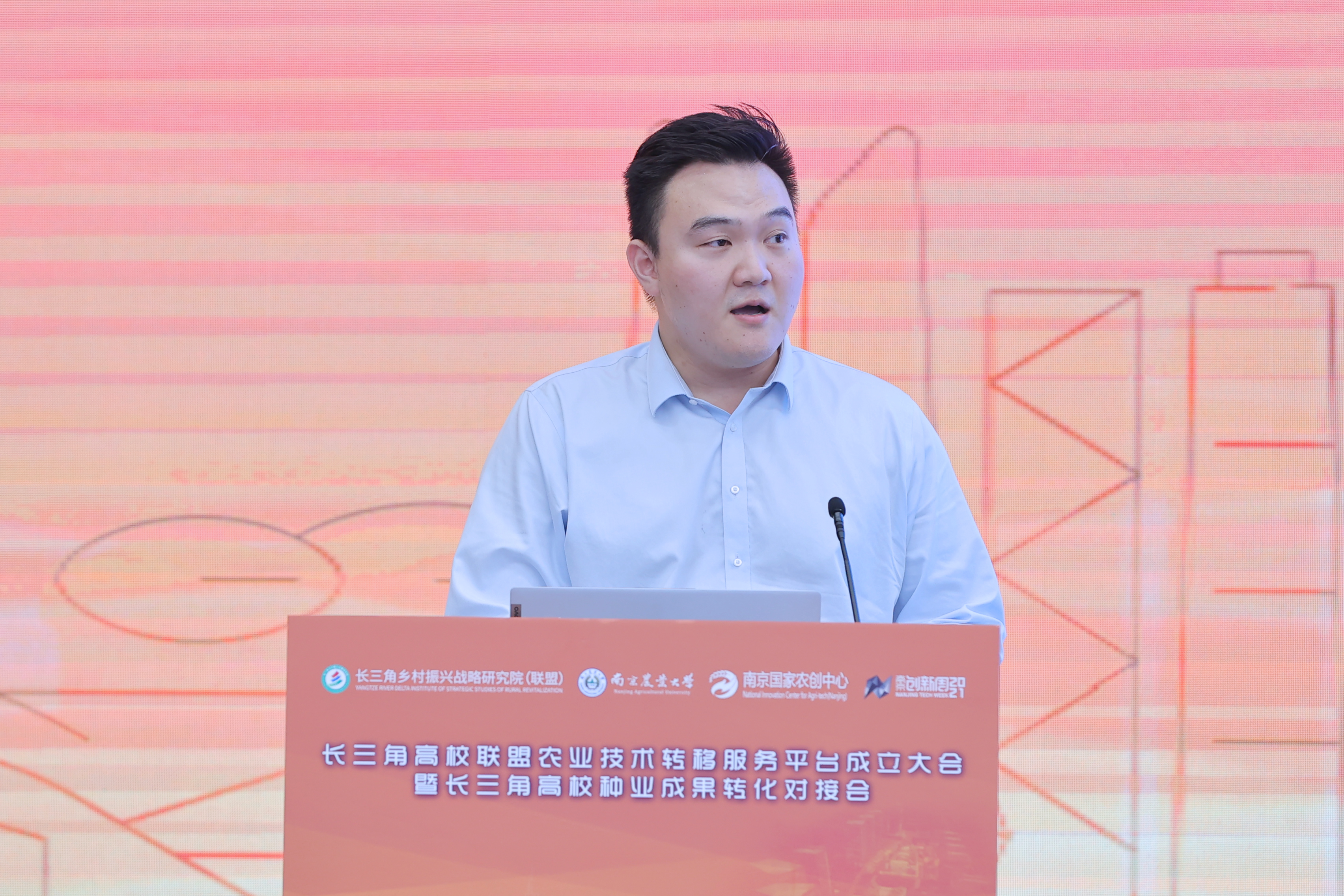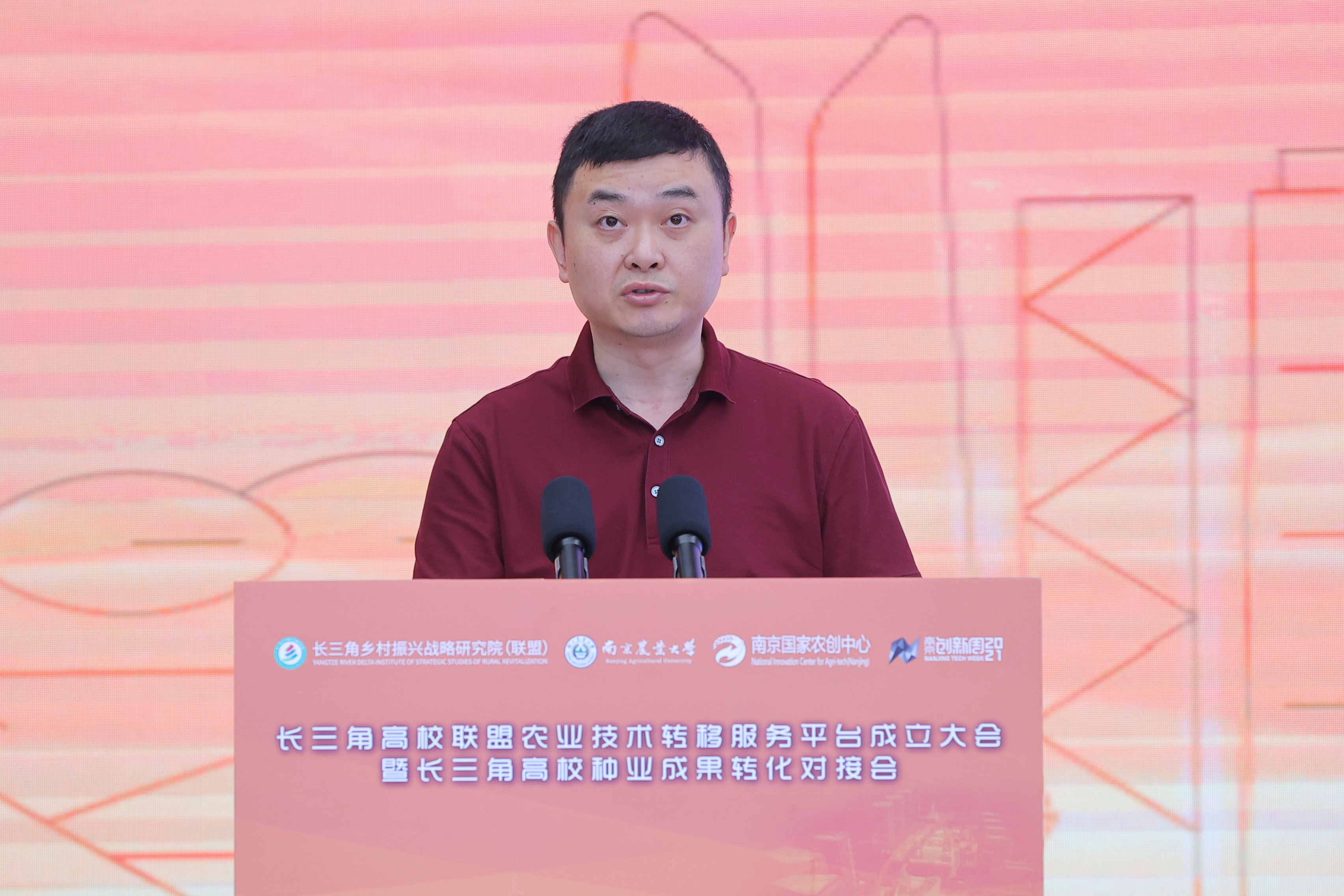 江苏省农业农村厅科教处处长姜雪忠讲话,他表示平台推动科技、金融与企业、产业高度融合,为长三角地区技术转移激发新活力、产业发展提供新动能。江苏省科技厅科研机构处副处长张洪钢对技术转移相关政策进行了解读。