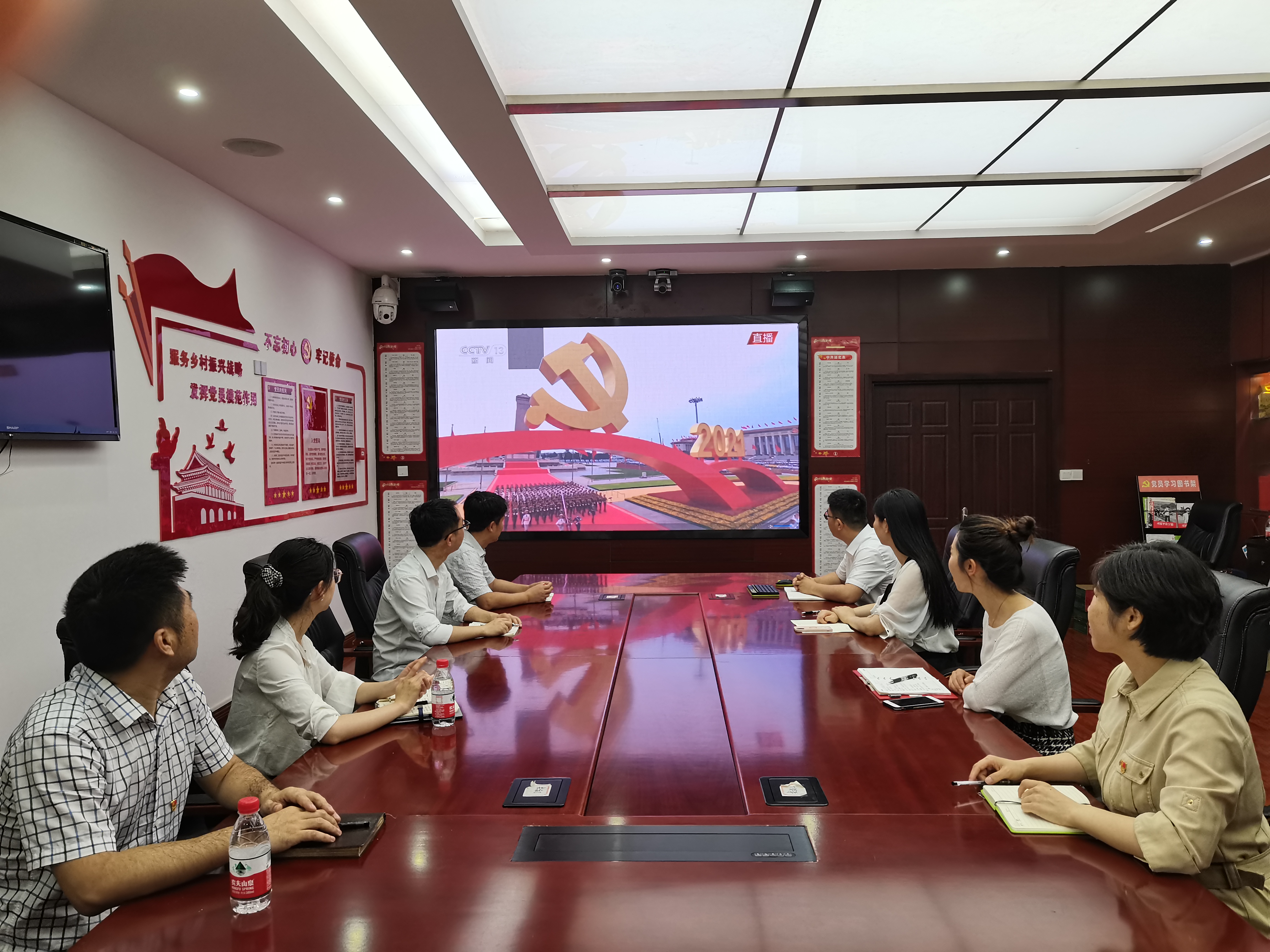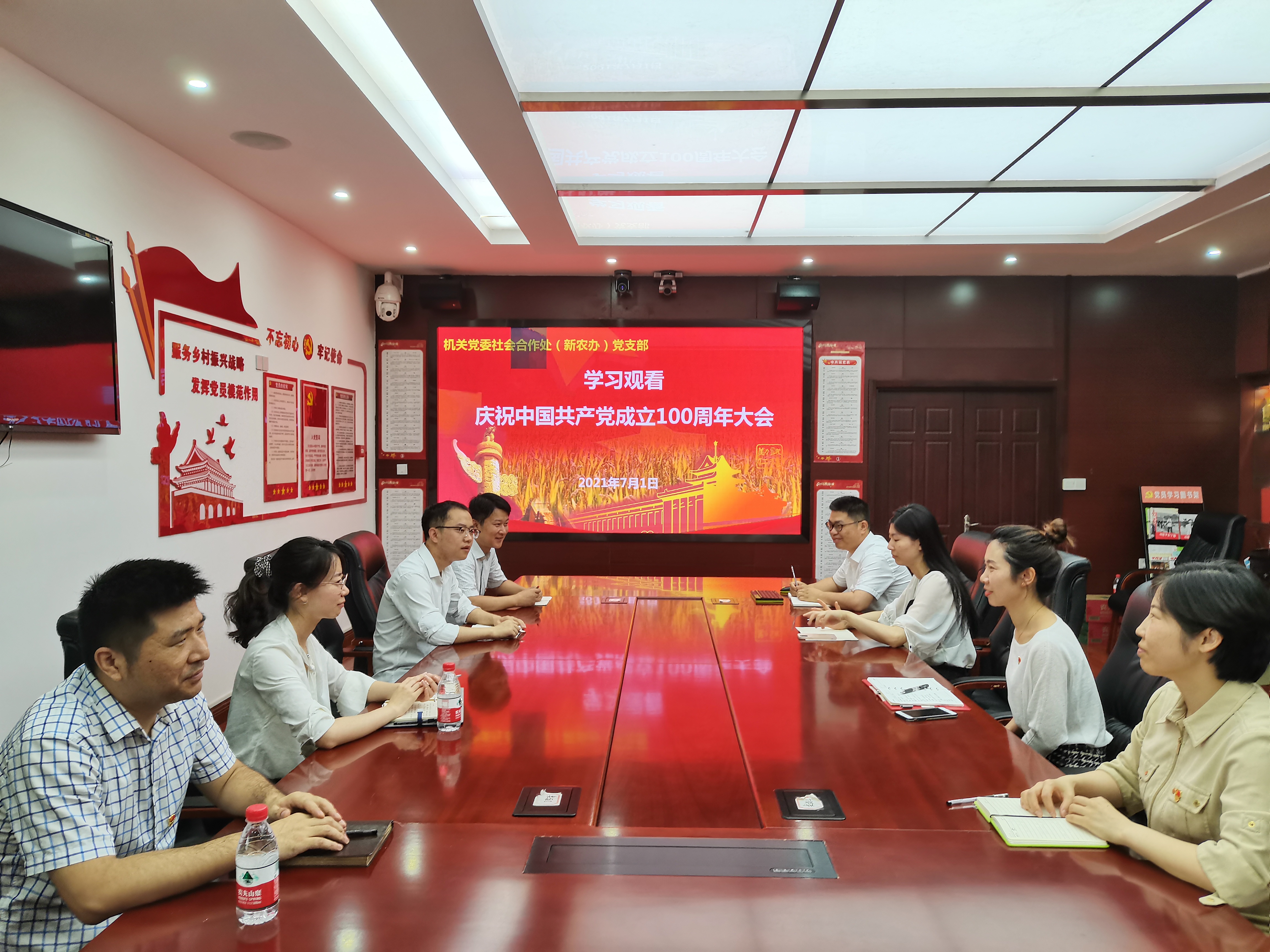 7月1日上午8时,社会合作处全体党员集中学习观看庆祝中国共产党成立100周年大会。陈巍书记、严瑾副书记在金陵研究院三楼报告厅集中观看,支部其他8名党员在行政楼B220会议室集中学习观看。