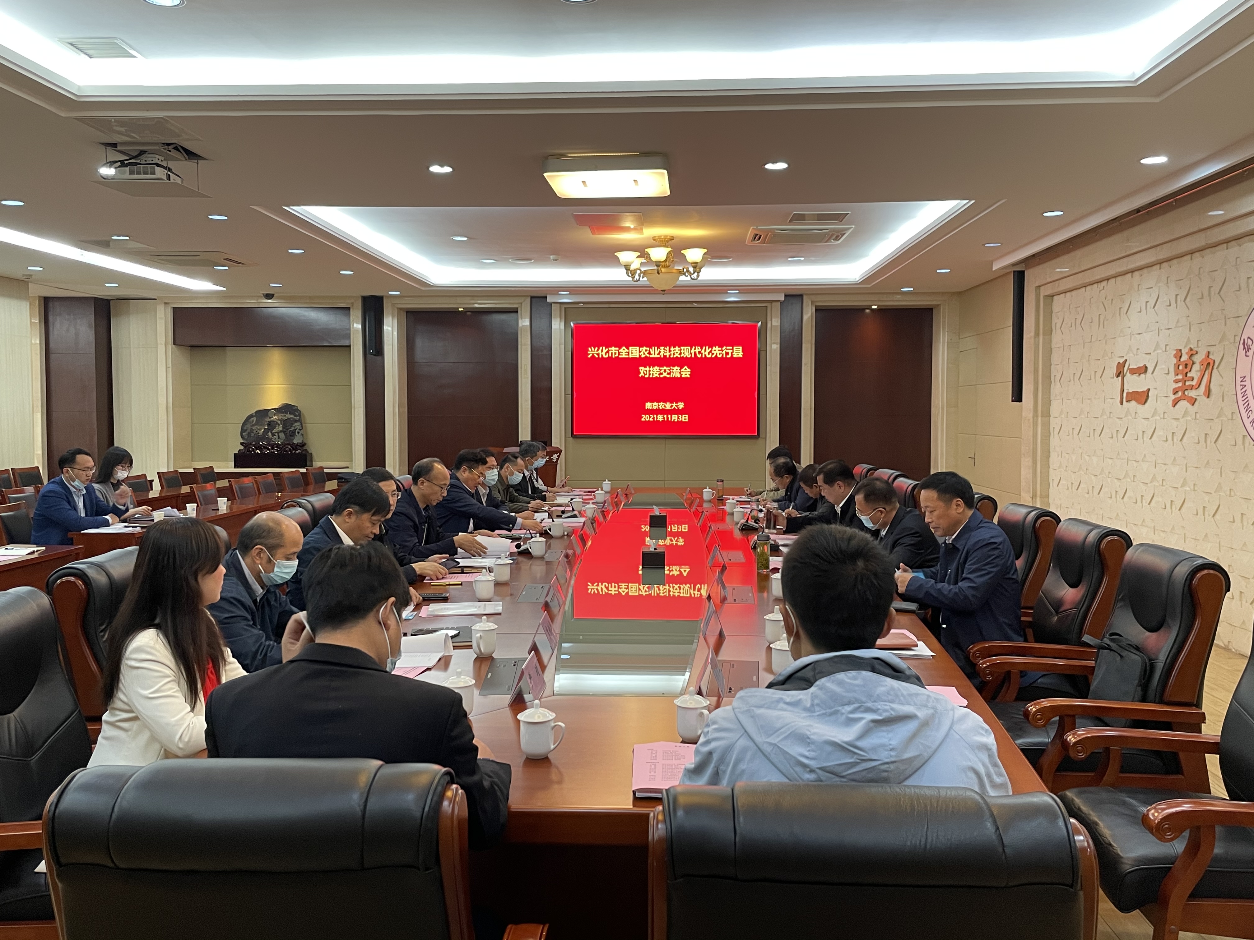 为进一步推进兴化市先行县共建方案的制定和共建协议的签约,11月3日,兴化市全国农业科技现代化先行县共建方案对接交流会在ios版雷竞技官网召开。兴化市委副书记徐立华、兴化市人民政府副市长刘汉梅、市委办副主任赵斌、农业农村局局长郏成洋、乡村振兴局副局长陈炳干,ios版雷竞技官网副校长丁艳锋、社会合作处处长陈巍、副处长严瑾及各产业工程团队首席参加对接会。会议由陈巍主持。