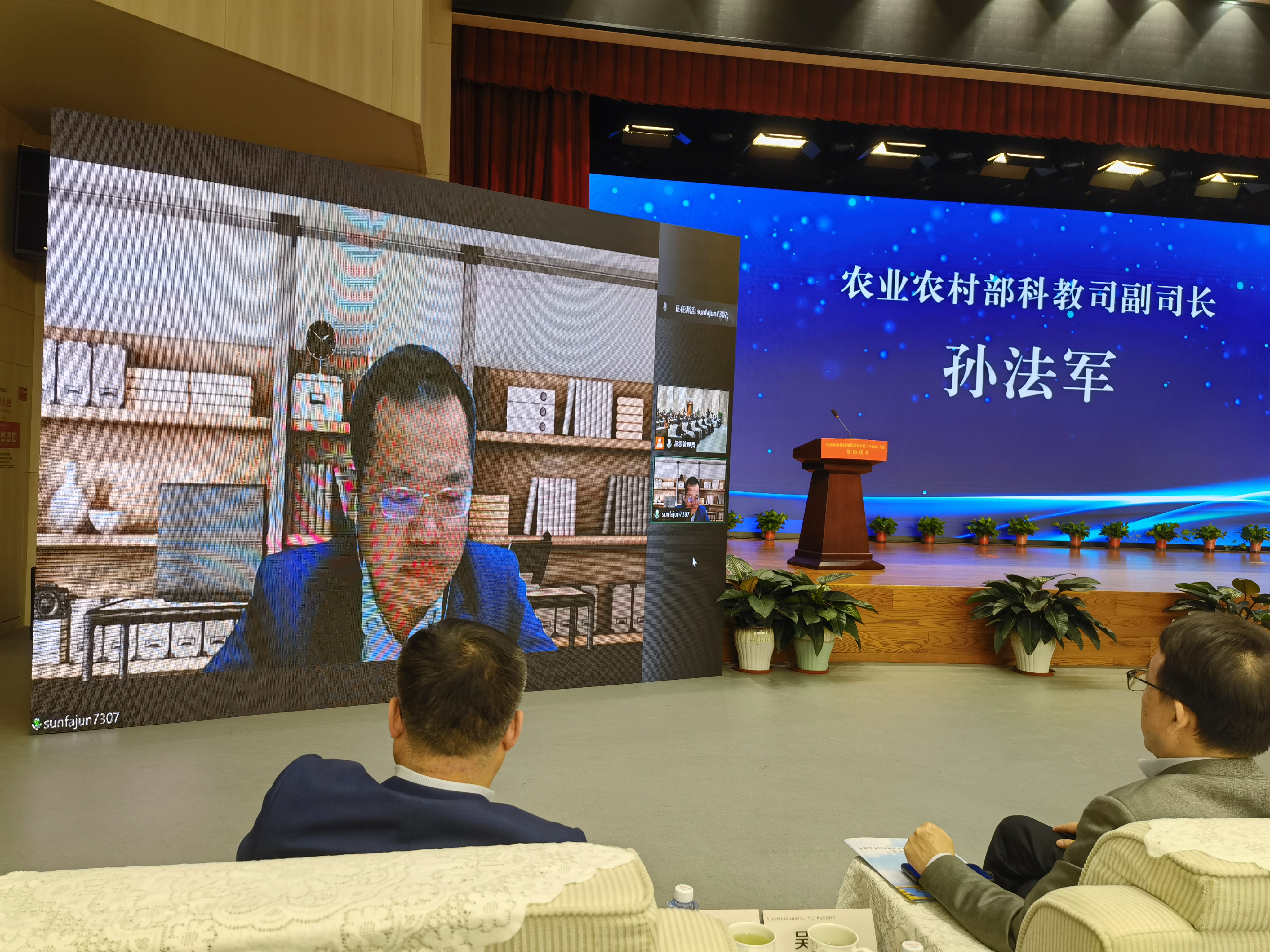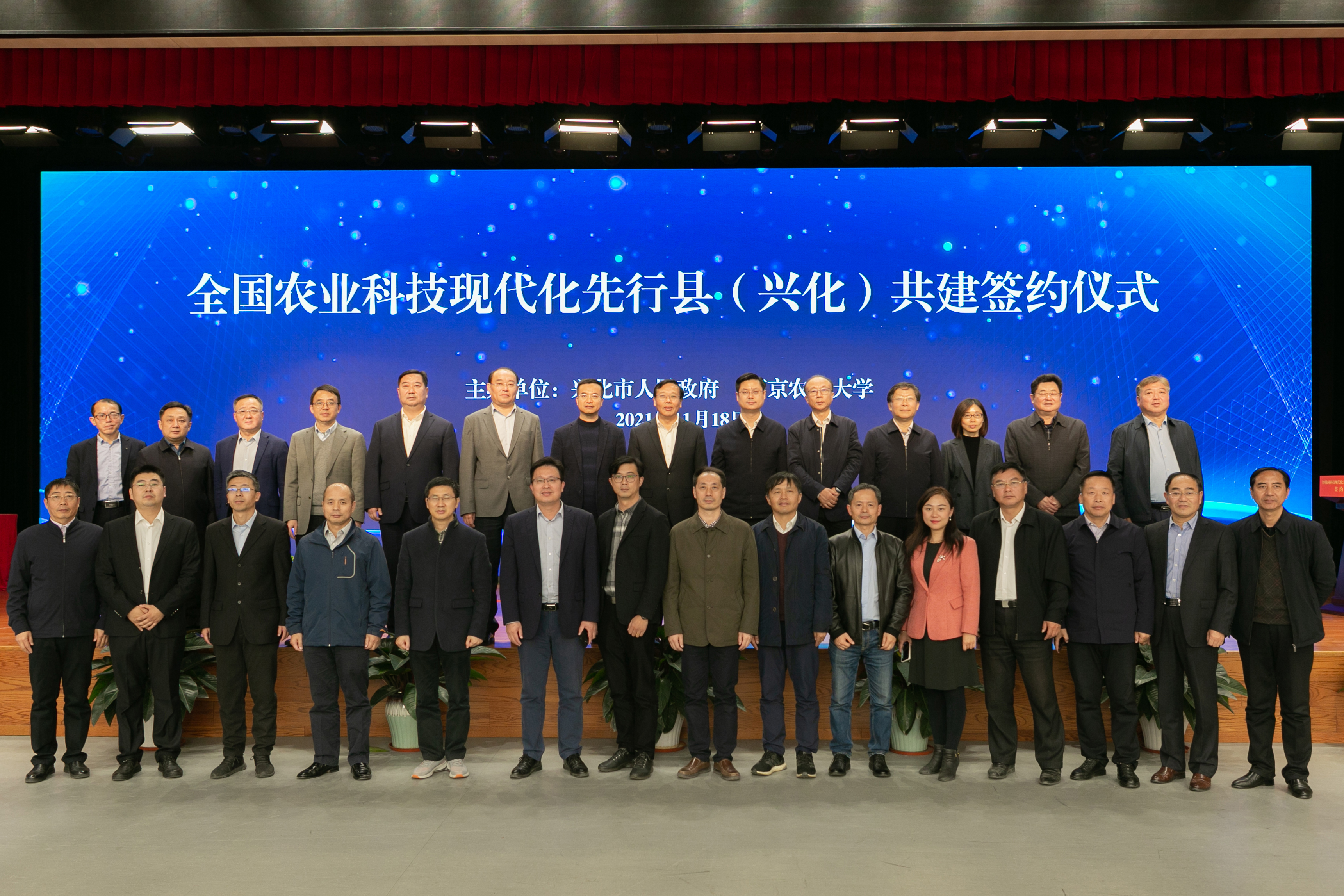 11月18日,ios版雷竞技官网与兴化市人民政府共建全国农业科技现代化先行县签约仪式在兴化召开。农业农村部科技教育司副司长孙法军连线出席仪式并讲话,江苏省农业农村厅总农艺师唐明珍、科教处处长姜雪忠,ios版雷竞技官网校长陈发棣,党委常委、副校长丁艳锋,党委常委、组织部部长吴群,泰州市农业农村局局长蒋向荣,兴化市委副书记、市长殷俊、副书记徐立华、副市长孙玲玲等领导出席签约仪式。签约仪式由徐立华主持。