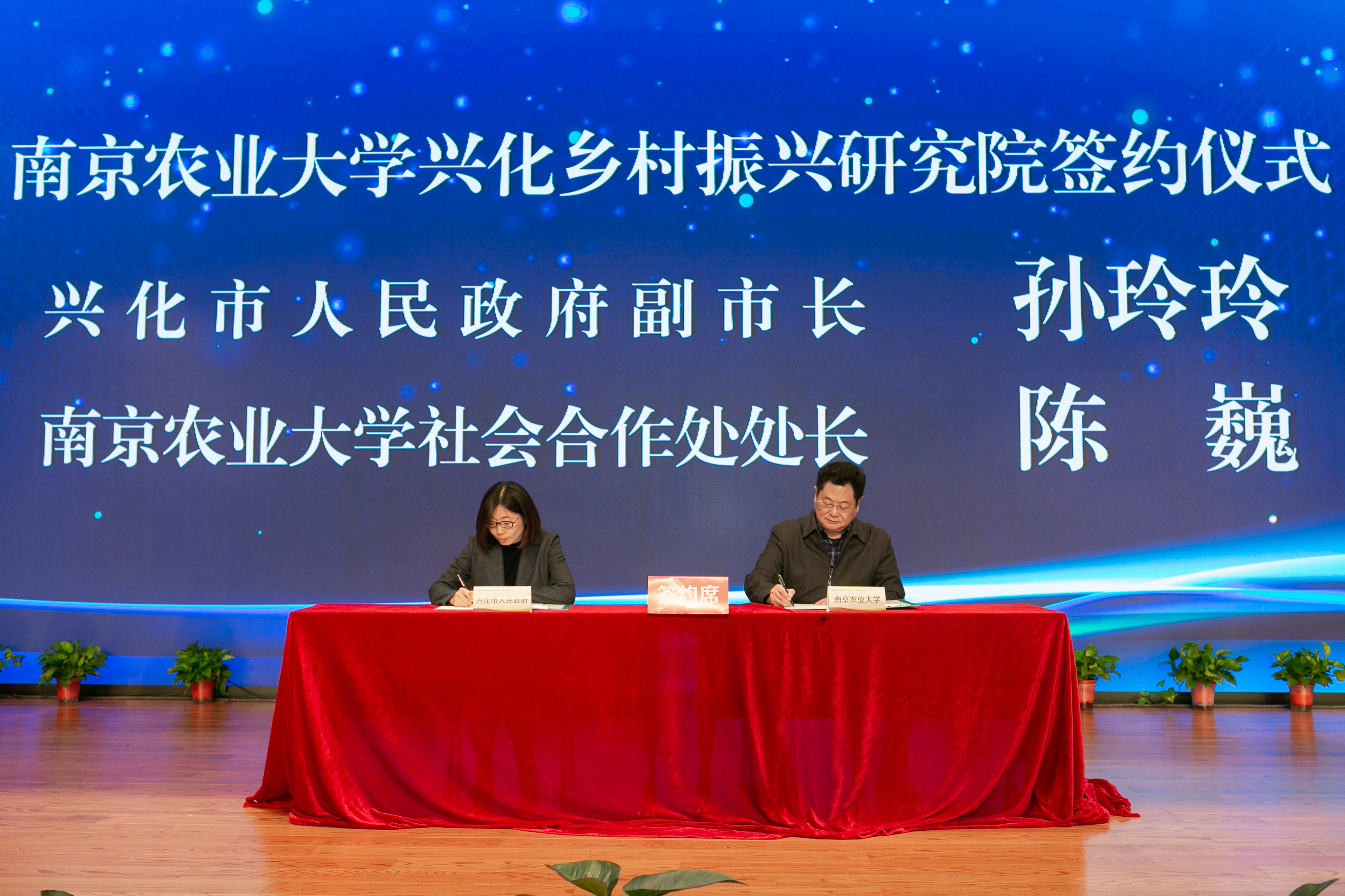 签约仪式上,丁艳锋代表学校与殷俊签订了兴化市先行县共建协议,陈发棣与殷俊为ios版雷竞技官网兴化乡村振兴研究院揭牌。ios版雷竞技官网社会合作处处长陈巍与孙玲玲签订了兴化乡村振兴研究院共建协议,模式构建服务团队和7个产业首席团队分别与农业农村局有关负责人签订了产业合作协议。