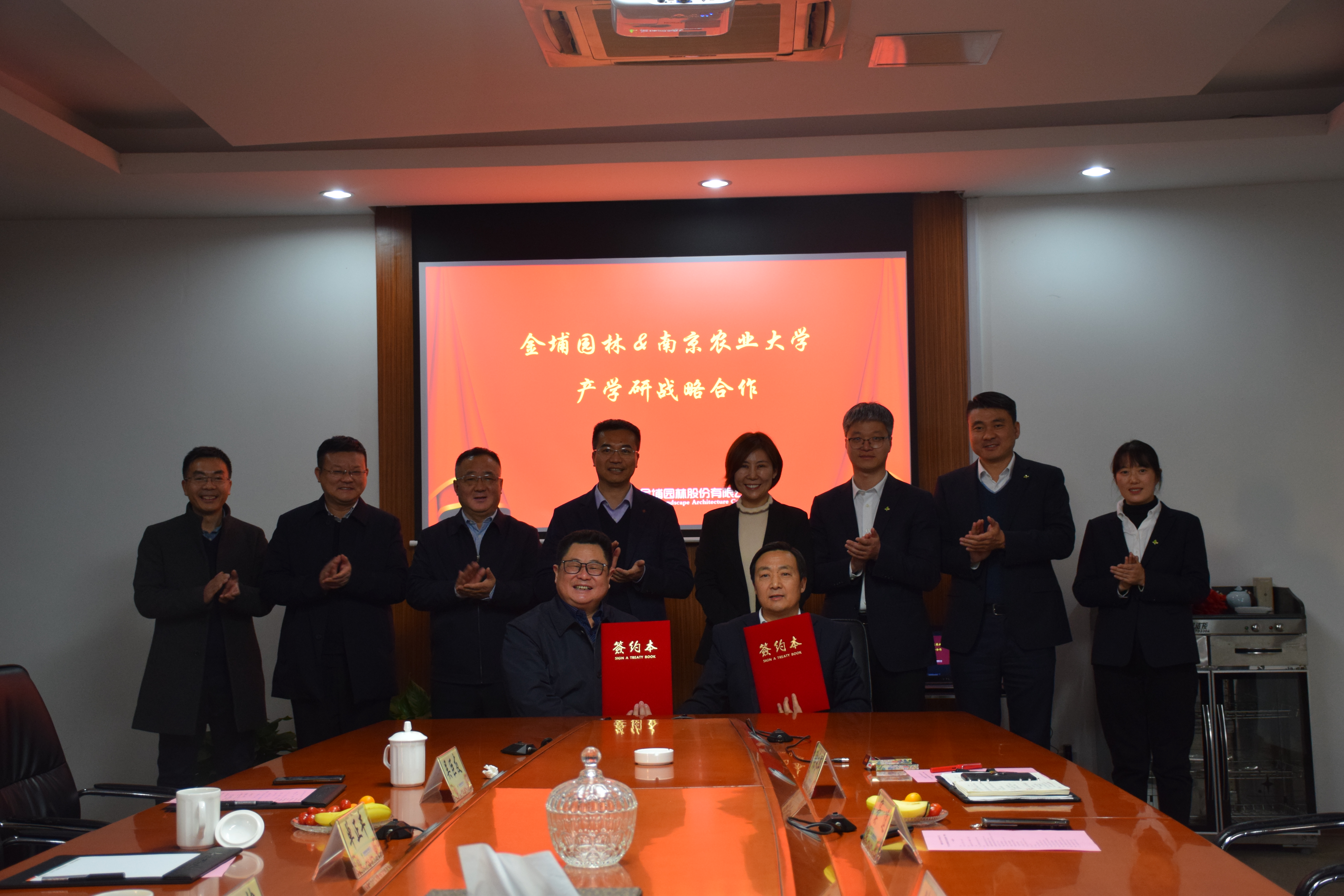 陈发棣与刘殿华共同为创新中心揭牌。社会合作处处长陈巍与刘殿华签订校企产学研战略合作协议。园艺学院院长吴巨友为金埔公司副总经理、设计院院长窦逗,副总经理张永辉,技术总监刘雁丽颁发校外导师聘书。