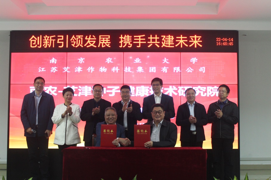 4月14日下午,我校与江苏艾津作物科技集团有限公司共建种子健康技术研究院签约仪式在艾津集团举行。江苏省植物保护植物检疫站站长田子华,校长助理王源超,植物保护学院院长张正光、副院长董莎萌,六合区委常委、区政府副区长吕明亮,六合区科技局局长孙波,江苏艾津作物科技集团有限公司董事长张申伟及校社会合作处、植物保护学院、六合区农业农村局、经济开发区管委会等部门相关领导、教授二十余人出席仪式。艾津集团总裁周桂东主持了签约仪式。我校社会合作处处长陈巍和张申伟代表校企双方签订了共建种子健康技术研究院合作协议。