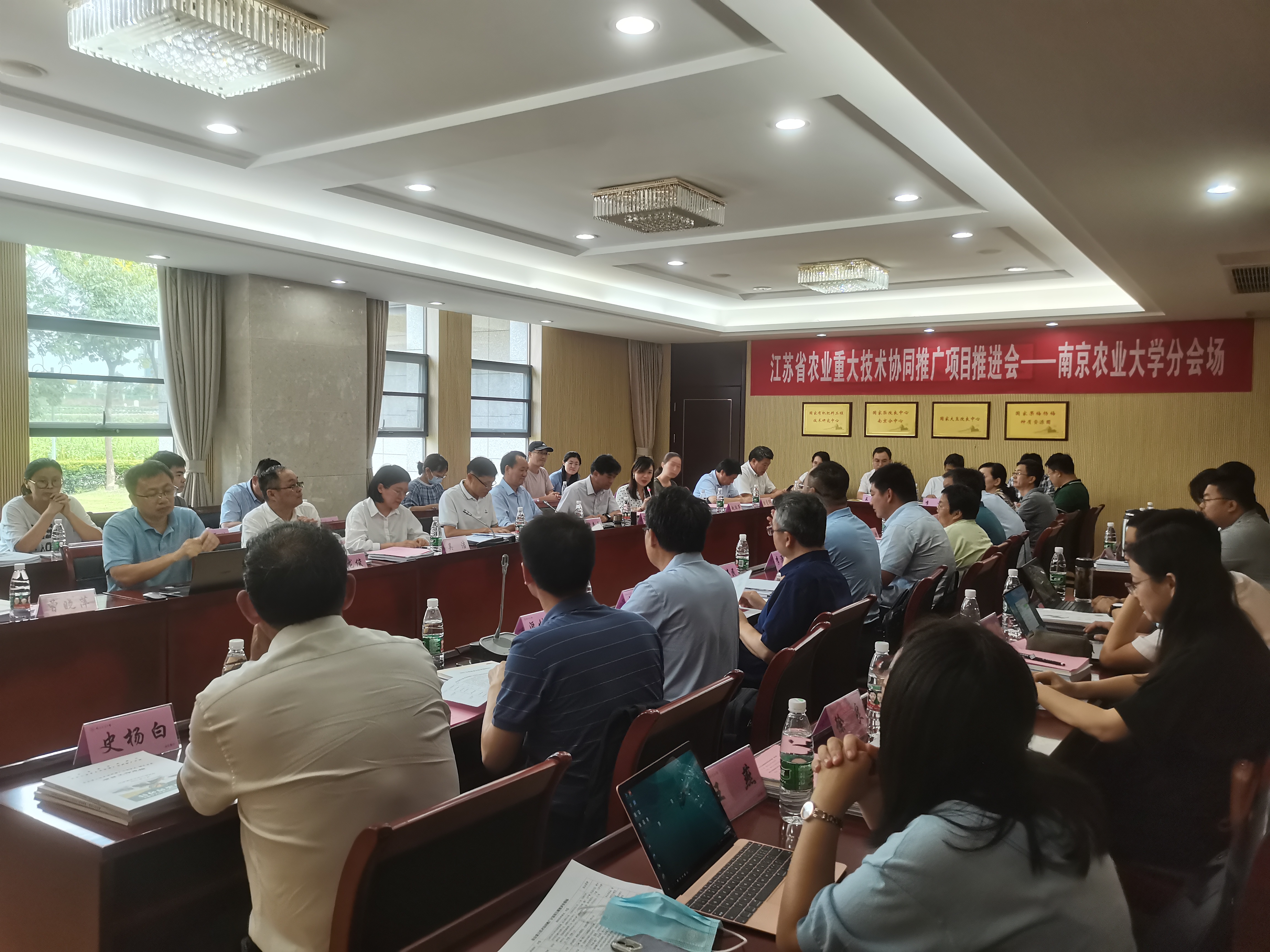 9月2日,江苏省农业重大技术协同推广计划项目(以下简称“协同推广项目”)推进会暨农业重大技术协同推广工作赛一赛、成绩晒一晒活动在我校召开。本次会议由江苏省农业农村厅科教处主办、ios版雷竞技官网社会合作处承办。省财政厅农业农村处二级调研员储惠平,省农业农村厅科教处四级调研员黄银忠,我校社会合作处副处长严瑾以及来自我校与省农业技术推广总站、省淡水水产研究所、省海洋水产研究所、省农牧科技职业学院等15个项目组首席、成员等47人出席会议。会议由严瑾主持。