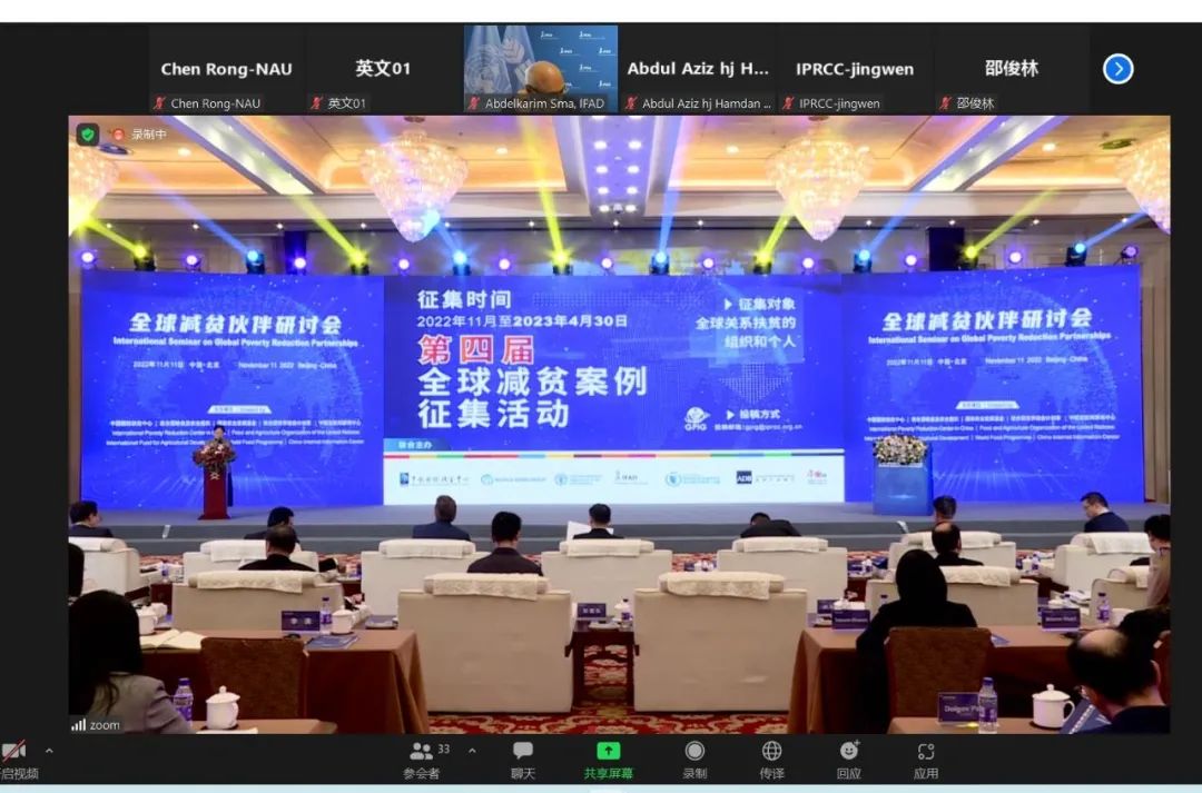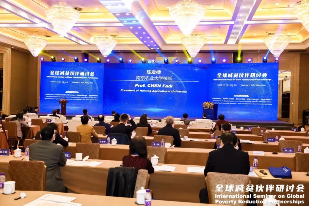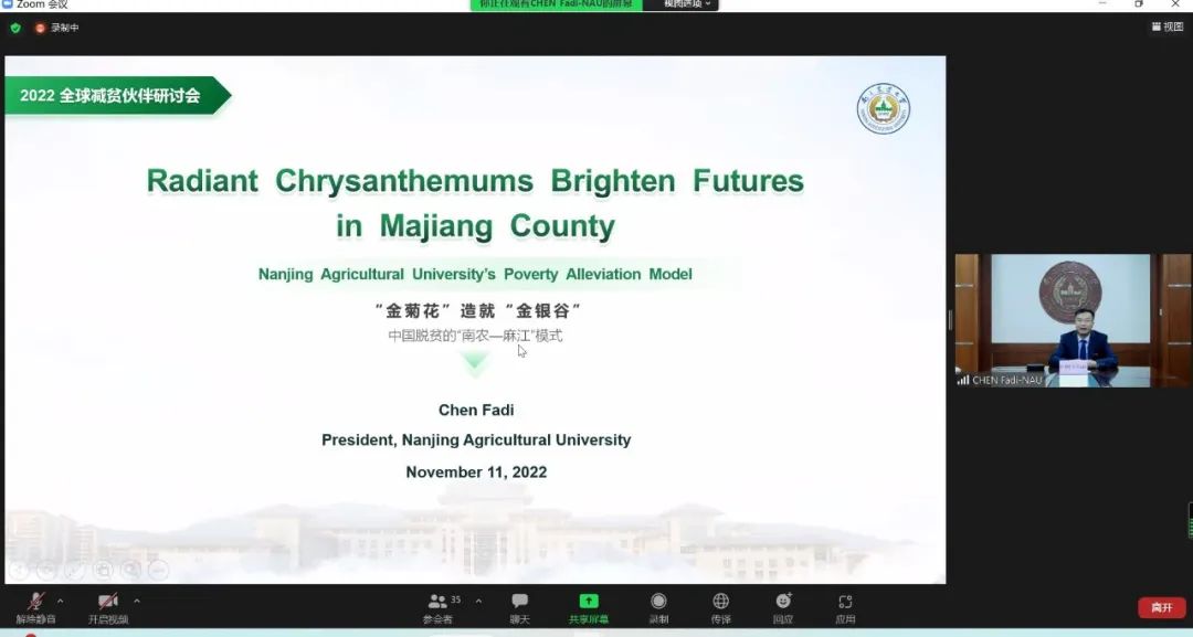 11月11日,“2022 年全球减贫伙伴研讨会”在北京以线上线下相结合的形式举办,校长陈发棣应邀线上参加会议并做“‘金菊花’造就‘金银谷’——中国脱贫的‘南农—麻江’模式”的大会报告。