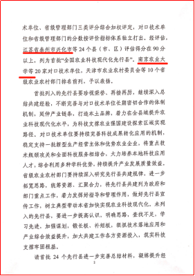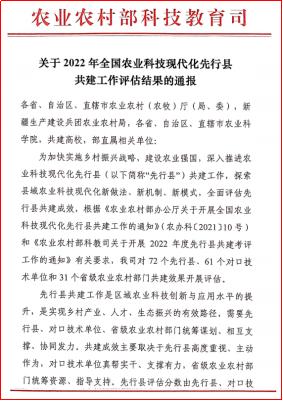 4月17日,农业农村部科技教育司发布了《关于2022年全国农业科技现代化先行县共建工作评估结果的通报》,我校在全国61个对口技术单位中获评单项考核第一。同时与我校作为对口技术单位共建的泰州市兴化市在全国72个先行县中脱颖而出再次荣获第一,与浦口区先行县均列为首批“全国农业科技现代化先行县”。