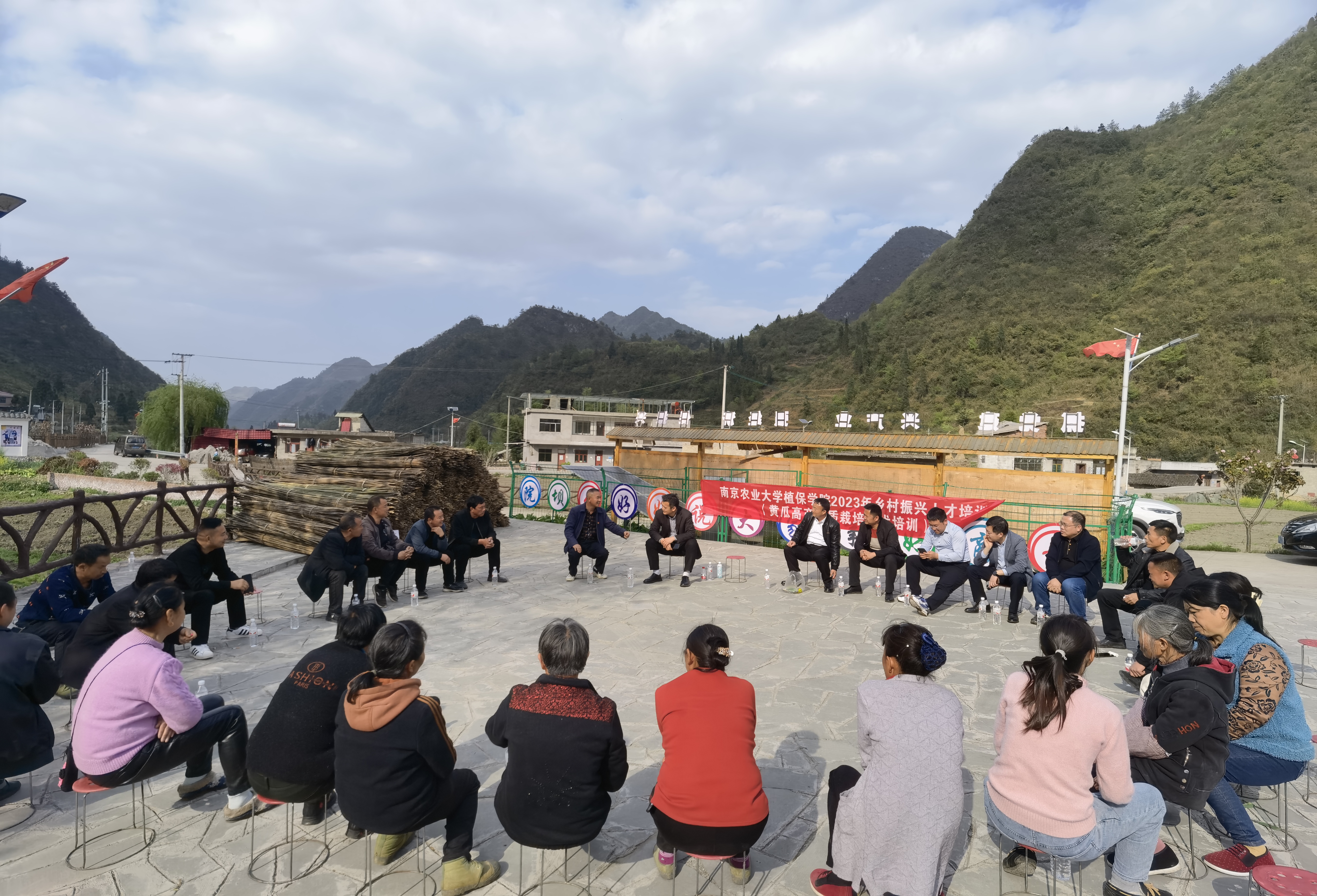 4月8日下午,专家组一行赴我校定点帮扶单位——麻江县水城村开展乡村振兴帮扶活动,现场举行了黄瓜高产优质栽培技术培训、蔬菜产业合作调研以及村企座谈交流,并向农户捐赠了黄瓜新品种。现场培训农民30余户,指导农户病虫害防治和科学用药。