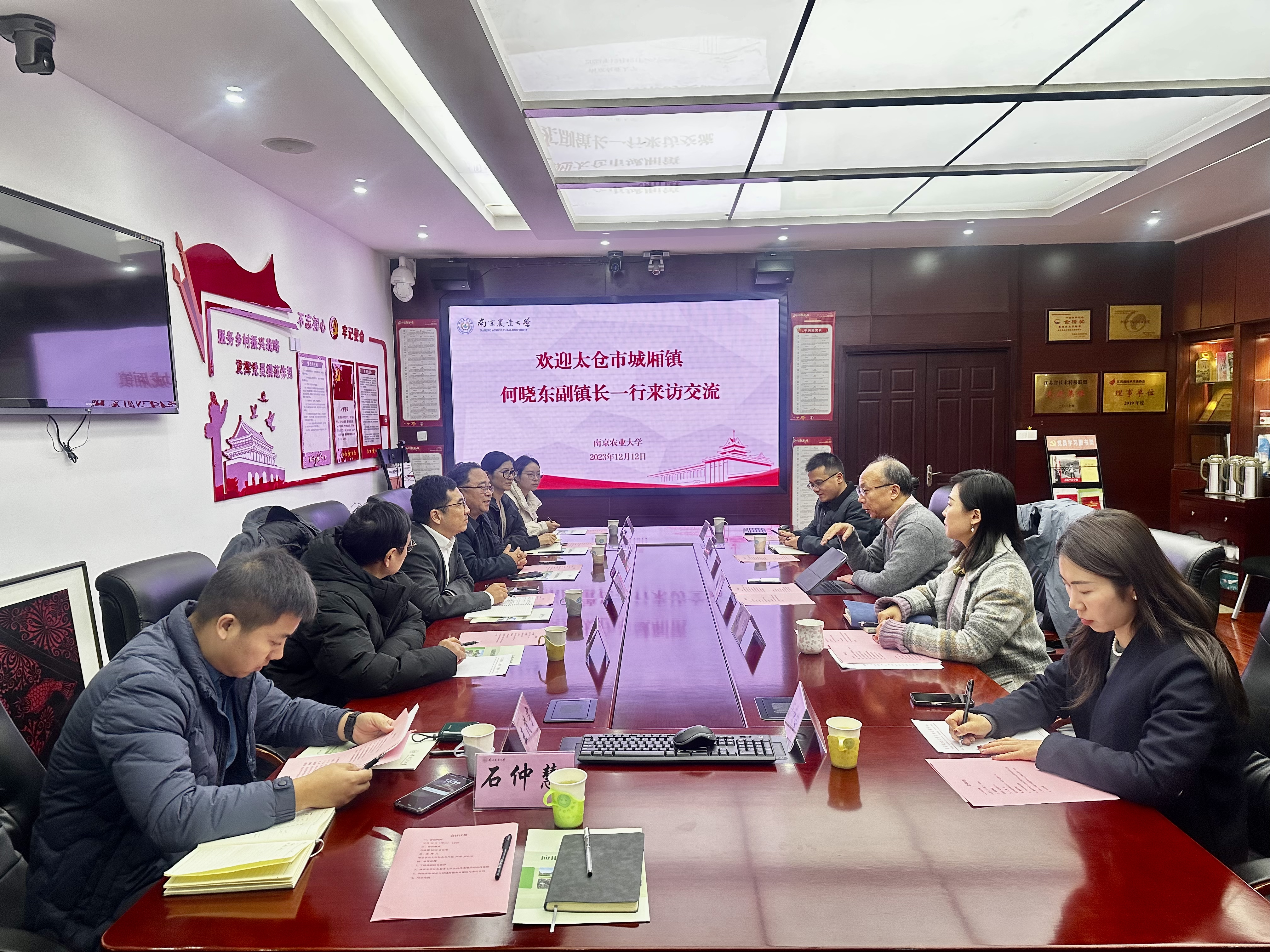 12月12日,太仓市城厢镇副镇长何晓东一行来我校围绕校地合作开展座谈交流。我校党委常委、副校长丁艳锋,社会合作处副处长严瑾、农学院副院长李刚华、园艺学院副院长束胜参加本次座谈。会议由严瑾主持。