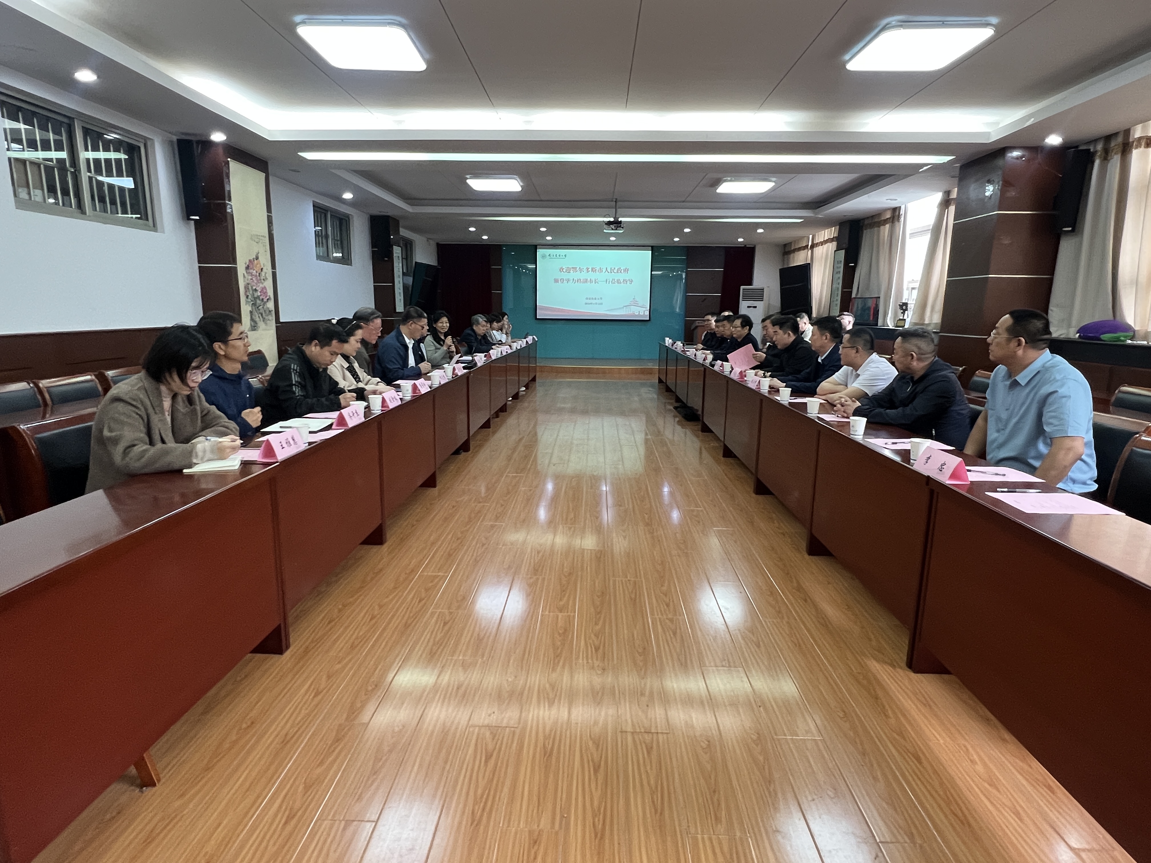 4月12日,鄂尔多斯市额登毕力格副市长一行来我校调研交流,我校党委副书记、纪委书记吴荣顺参加交流座谈。