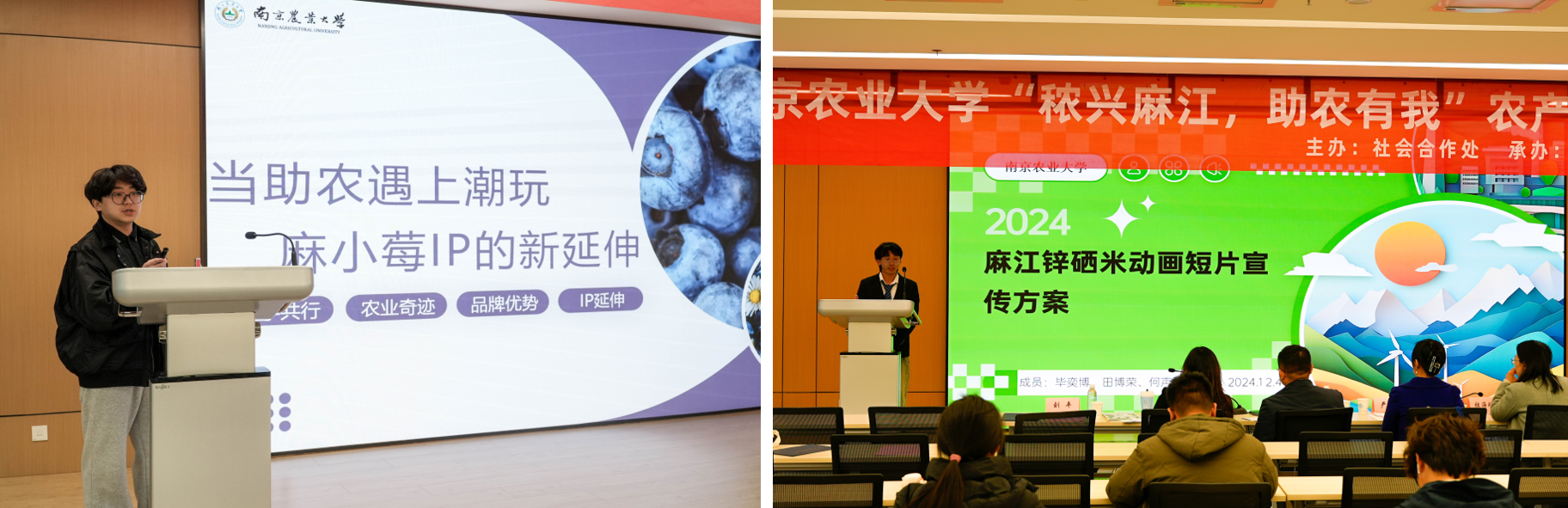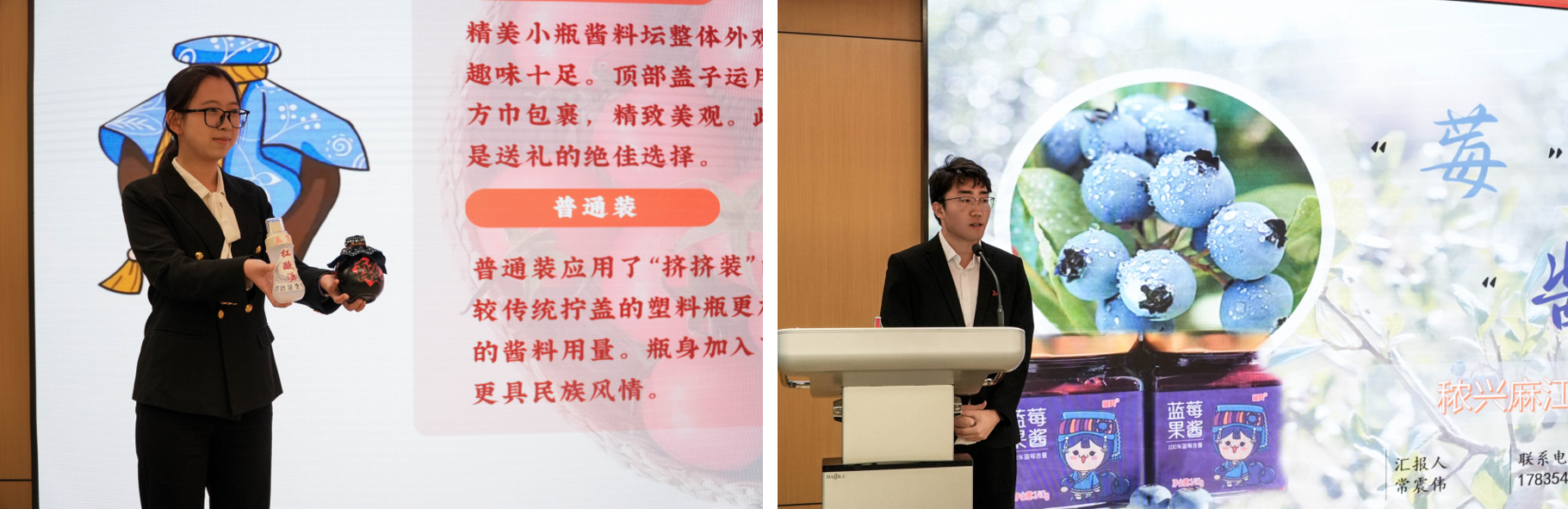 本次大赛由社会合作处主办,工学院和麻江县乡村振兴研究院联合承办。12组选手分别以锌硒米、蓝莓、菊花、酸汤等麻江当地农产品为推广对象,将当地民俗文化与产品包装和推广相结合,通过巧妙的包装设计思路、创意的广告传播方案以及创新的营销战略策划等方式充分展示麻江农产品的品牌魅力,讲述“南农麻江一家情”的生动故事。