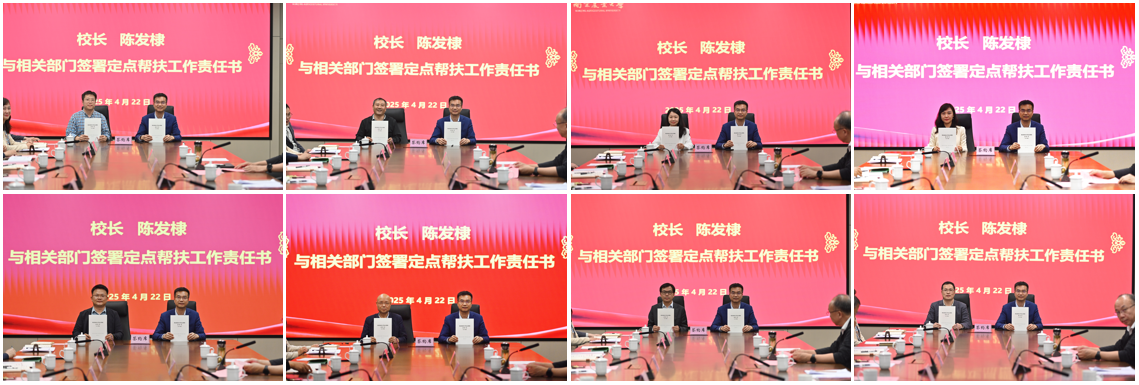 陈发棣分别与党委组织部、工会、计财与国有资产处、社会合作处、校友总会办公室、后勤保障处、继续教育学院、资产经营公司等单位负责同志就投入帮扶资金、引进帮扶资金、培训基层干部和技术人员、直接购买和帮助销售脱贫地区农产品等方面签署了目标责任书,强调要加强定点帮扶各项任务的高质量推进和落实。