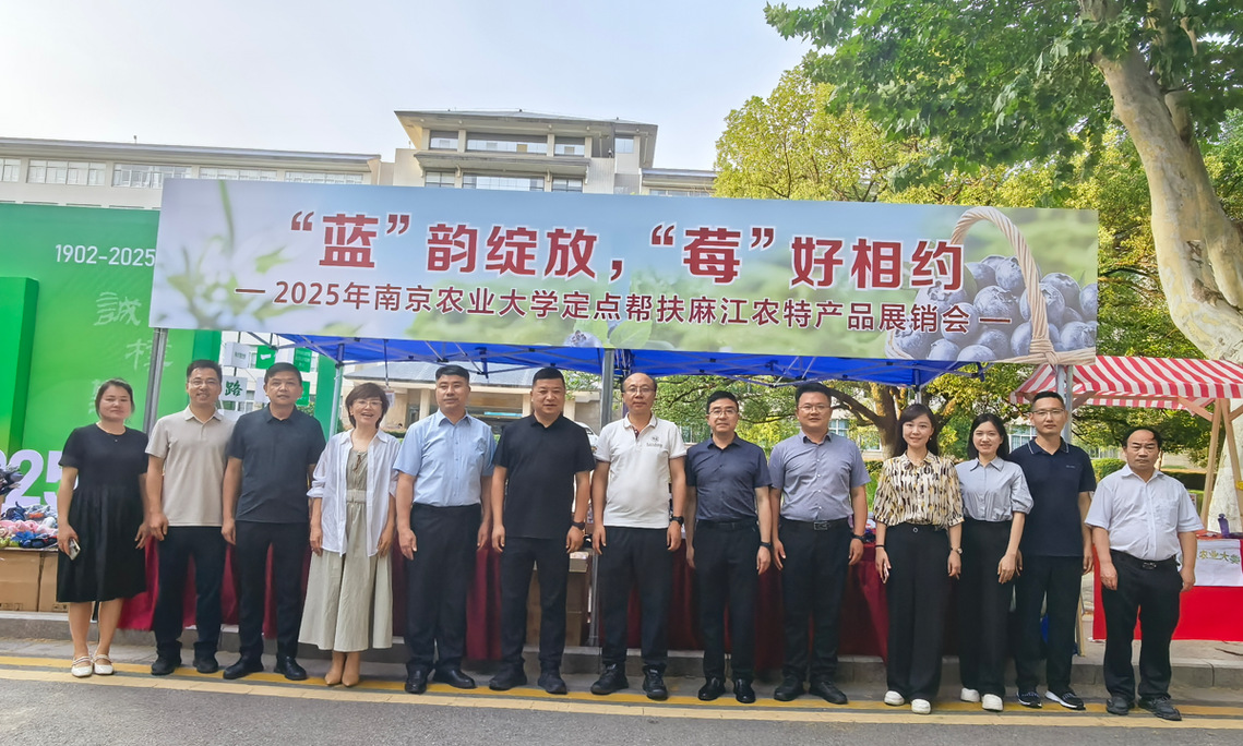6月16-18日,我校举办“蓝”韵绽放,“莓”好相约——南农大定点帮扶麻江农特产品展销会”。校党委书记王春春,校长陈发棣,校党委常委、副校长丁艳锋、单正丰,校党委常委吴群,麻江县人民政府县长卢天成等来到展销会现场,看望销售人员。