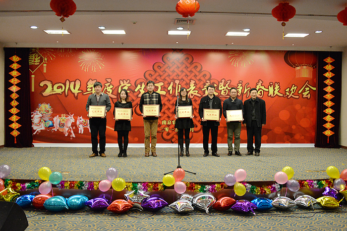 1月15日下午,2014年度学生工作表彰暨迎新春联欢会在我校学术交流中心举行。校党委副书记、纪委书记盛邦跃,校党委常委、党办主任刘营军,校团委书记夏镇波、学生工作处副处长刘亮、研究生工作部副部长姚志友出席大会,学生工作系统近200名教职员工欢聚一堂,辞旧迎新。表彰大会由刘亮主持。