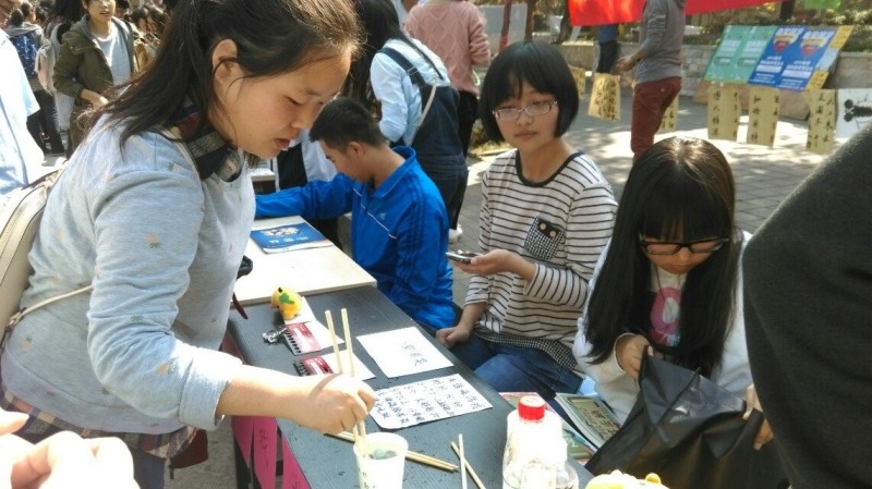 紧张的准备工作后,各个部门组织在开幕式上秀出了简单而有趣的小游戏。每个小活动前面都有同学在开心地玩着小游戏,欢笑不断。常务部的“夹弹珠”活动动手性强趣味性大,来参与的同学很多。